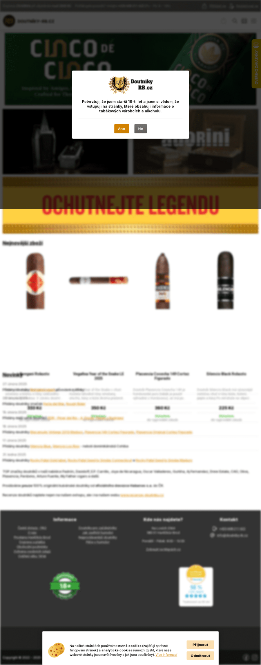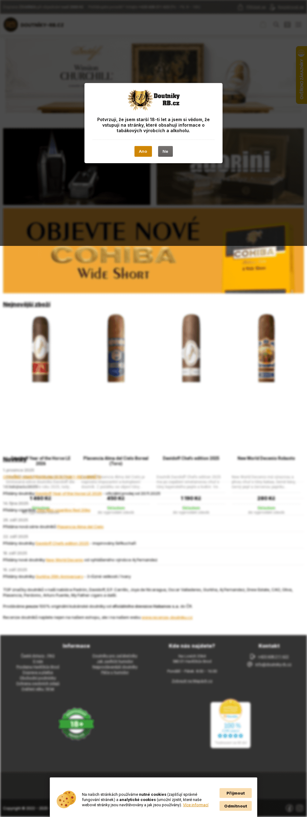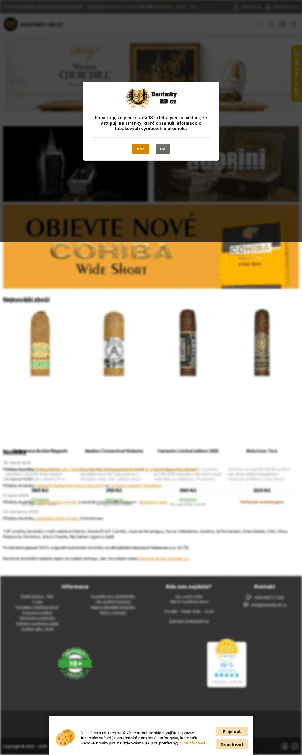 Obchod s doutníky a humidory. Kubánské doutníky, doutníky z Nikaraguy, doutníky z Dominikánské Republiky, whisky, karibské rumy, koňaky.