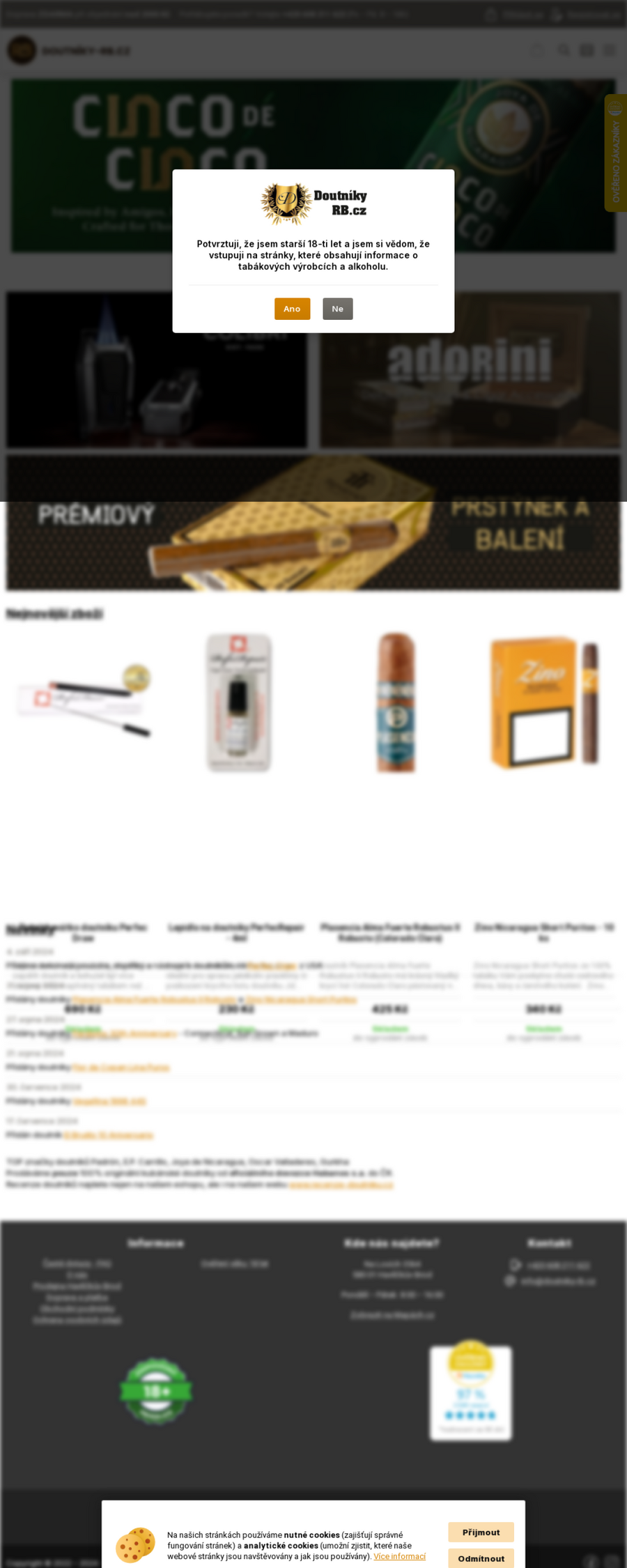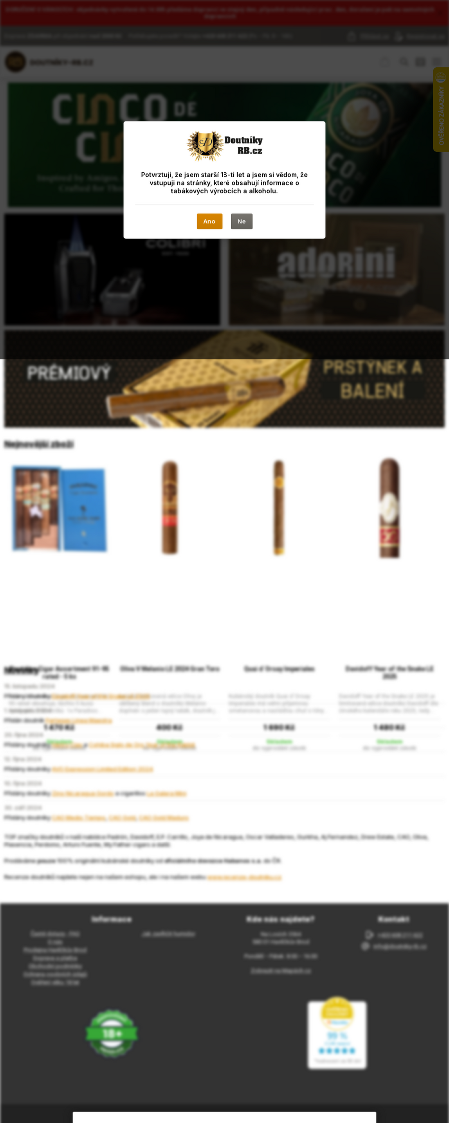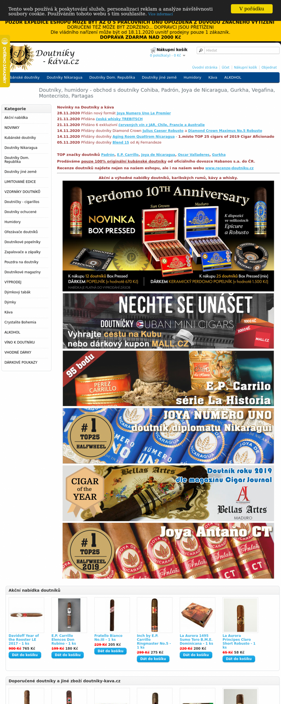 Obchod s doutníky a humidory. Kubánské doutníky, doutníky z Nikaraguy, doutníky z Dominikánské Republiky, whisky, karibské rumy, koňaky.