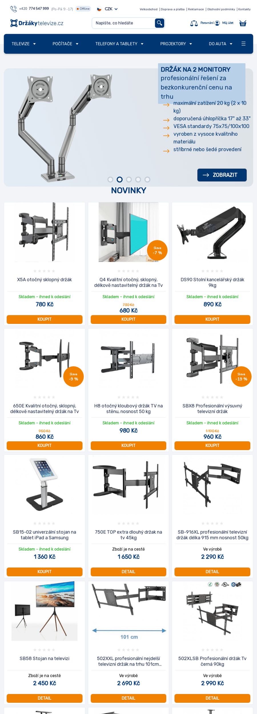 Nabízíme držáky na LCD, LED a plazmu · Držáky na monitory, TV stojany, Fixní držáky · Otočné a sklopné bez ramene · Sklopné držáky · Otočné s výsuvným ramenem · Stropní držáky · Stolní držák na monitor · Držáky pro iPad a tablety · Držáky na monitory · Držáky na projektory · Držáky na reproduktory. Odborné poradenství · Maloobchod i velkoobchod.