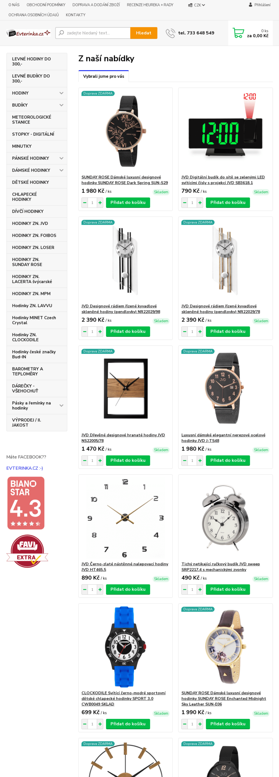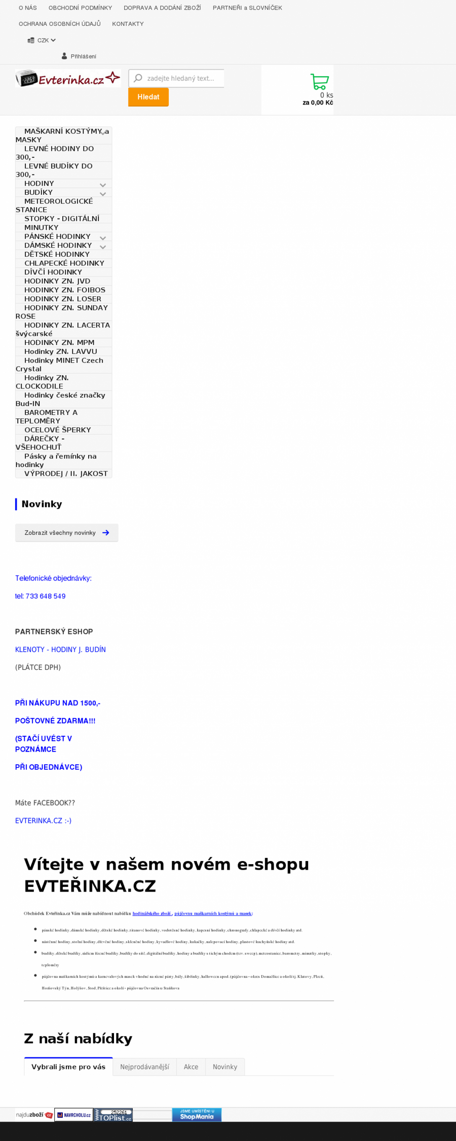 Prodej hodinářského zboží české kvalitní značky JVD, hodinky, hodiny, budíky, meteostanice, teploměry, stopky, chlapecké a dívčí hodinky, dětské hodiny, rádiem řízené hodiny, půjčovna a prodej maškarních kostýmů, ručně dělané kostýmy a karnevalové masky