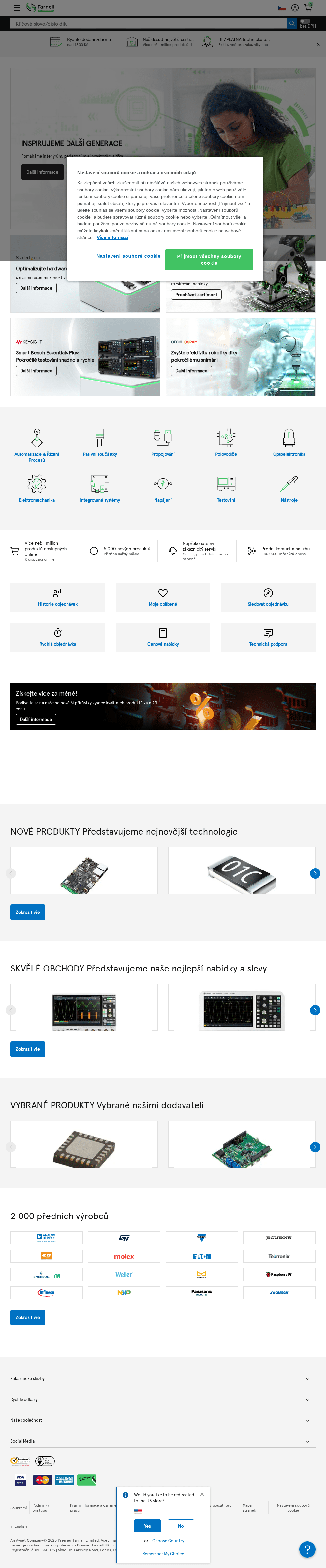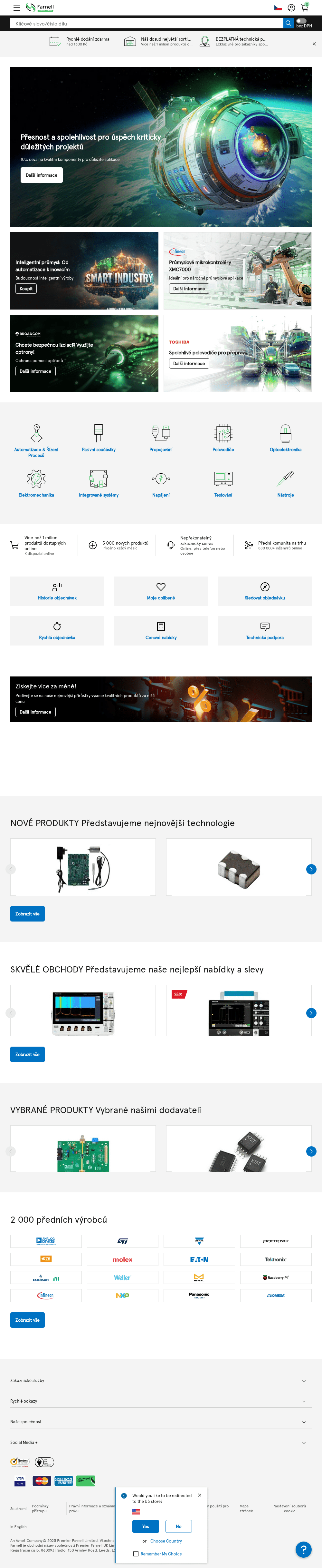 Farnell Česká republika - Distributor elektronických součástek. Největší nabídka od předních výrobců pasivních součástek, elektromechanických prvků a konektorů, jako jsou TE Connectivity, Vishay, Molex nebo Panasonic. Více než 35 000 produktů pro testování či měření a nástrojů či materiálů pro výrobu.