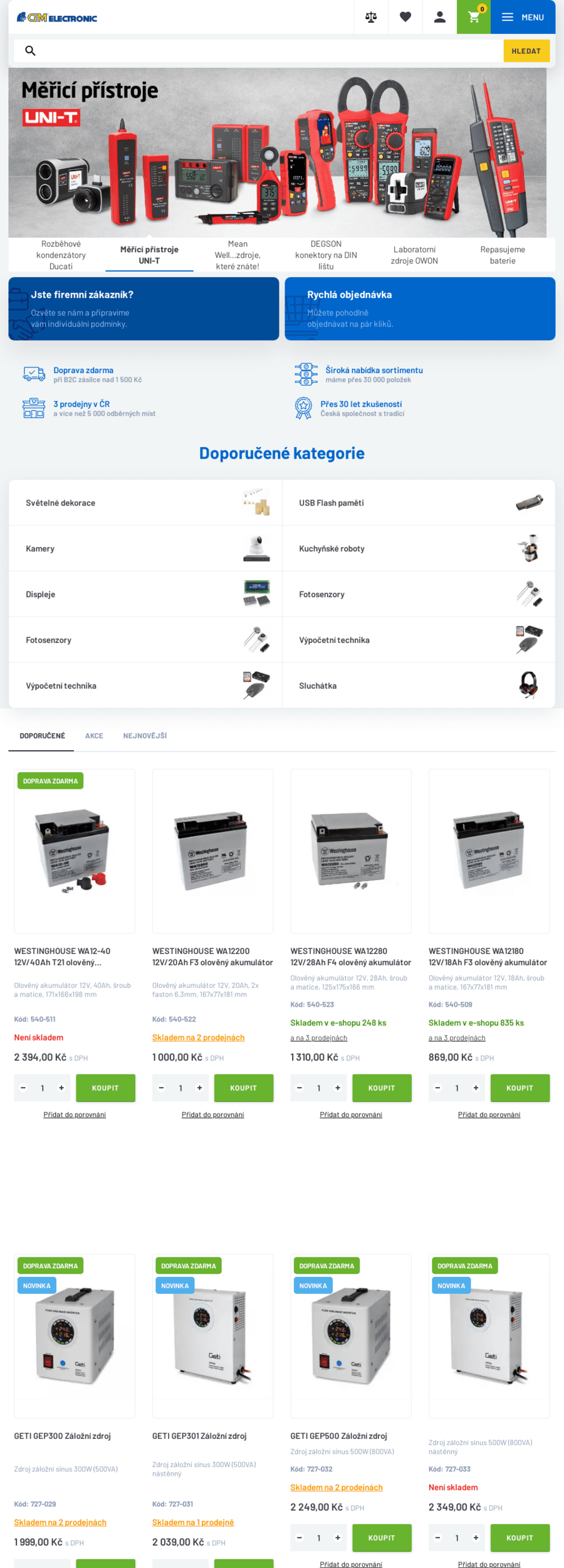 Elektronické součástky I Baterie, Zdroje I Napájecí adaptéry I Měřící přístroje I Elektroinstalační materiál I Nářadí I Hračky a Stavebnice I Chemie pro elektroniku I Osvětlovací technika I LED osvětlení I Hobby a Zahrada atd.