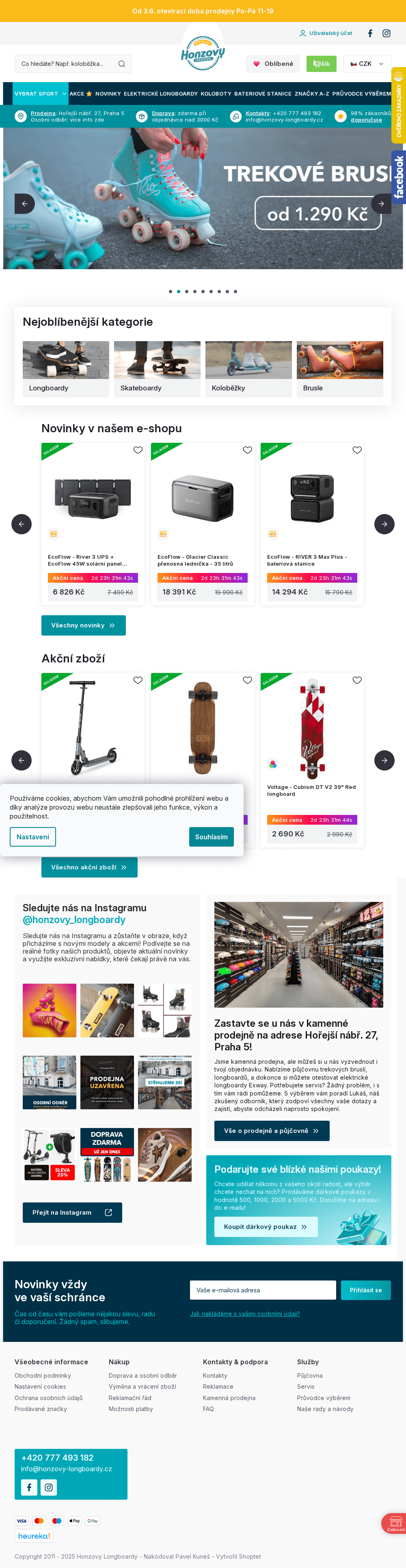 Longboardy, skateboardy, trekové brusle, penny boardy, freestyle koloběžky a další akční sporty. Kamenná prodejna v Praze.