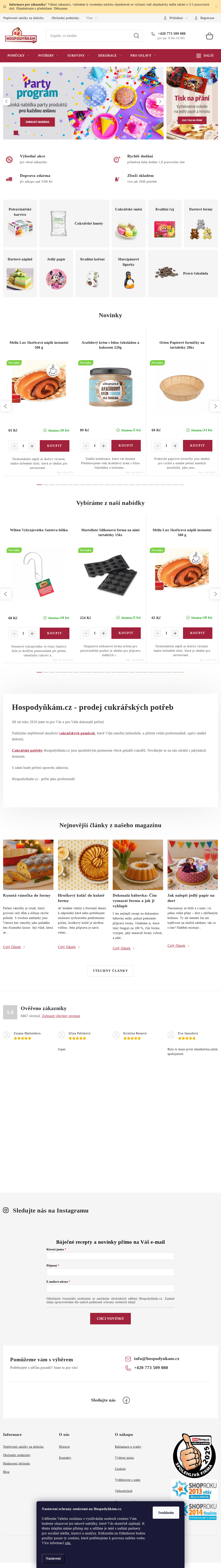 Cukrářské pomůcky, potřeby, suroviny a dekorace. Kuchyňské potřeby, potřeby pro oslavy.