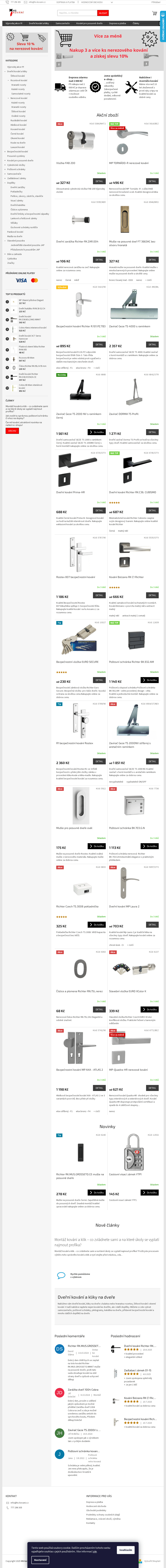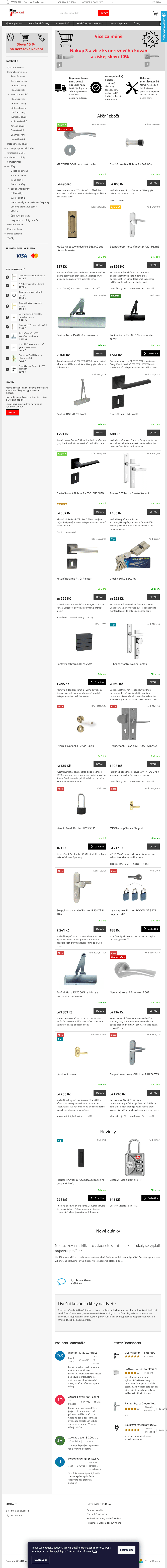 Prodáváme dveřní kování a kliky na dveře od českých i zahraničních výrobců. Nabízíme kliky s kulatou nebo hranatou rozetou, štítové kování, okenní kování, samozavírače (zavírače dveří), poštovní schránky, cylindrické vložky (včetně systému generálního klíče), přídavné bezpečnostní kování, stavební pouzdra a nejrůznější doplňky na dveře.