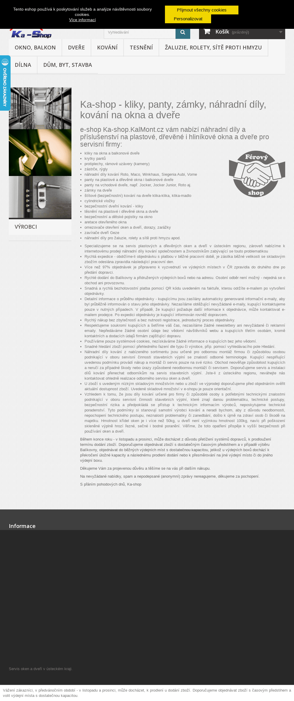 Náhradní díly, doplňky a příslušenství pro okna a dveře - kování, zámky, kliky, aretace, zavírače.