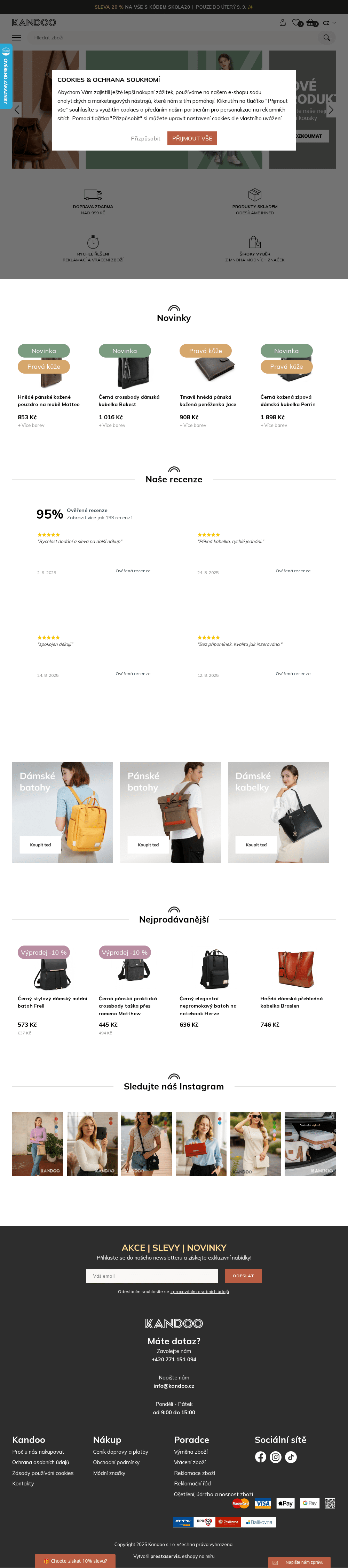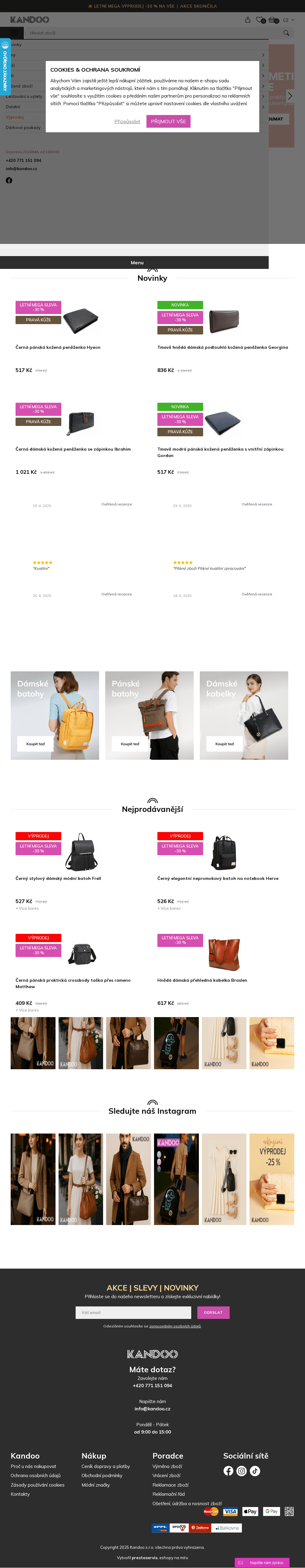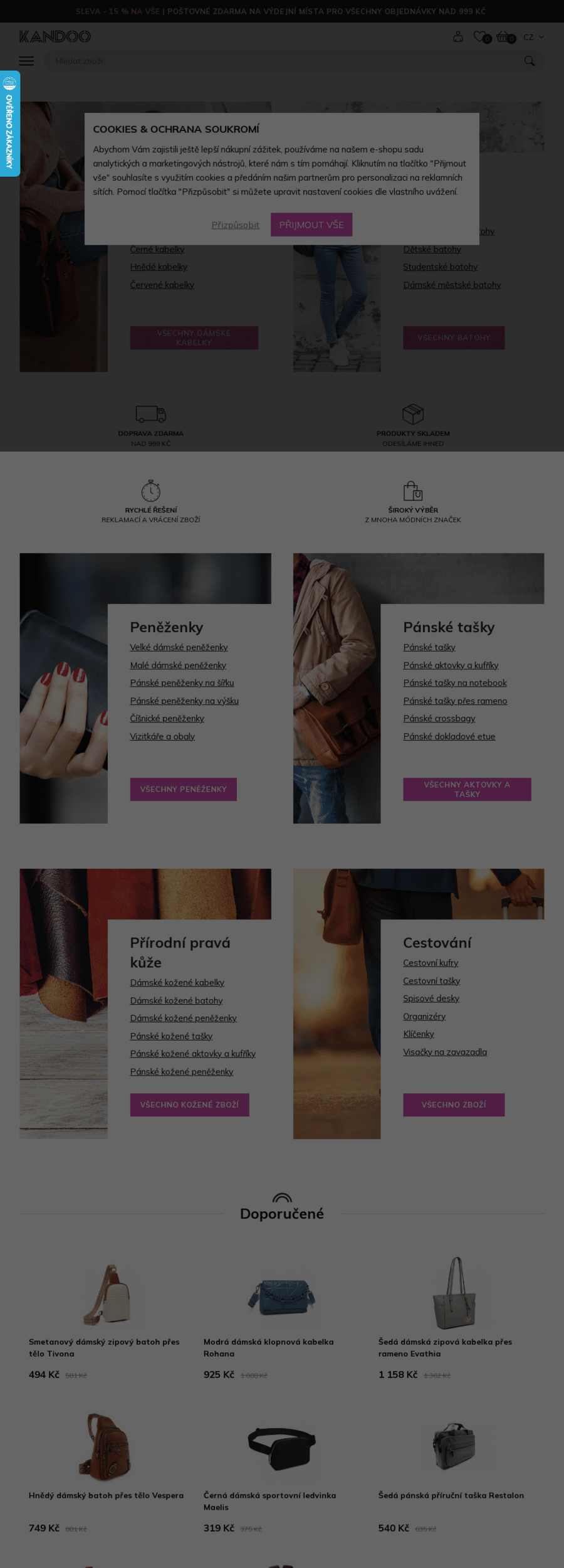 Dámské kabelky, pánské tašky, peněženky, batohy, pásky.