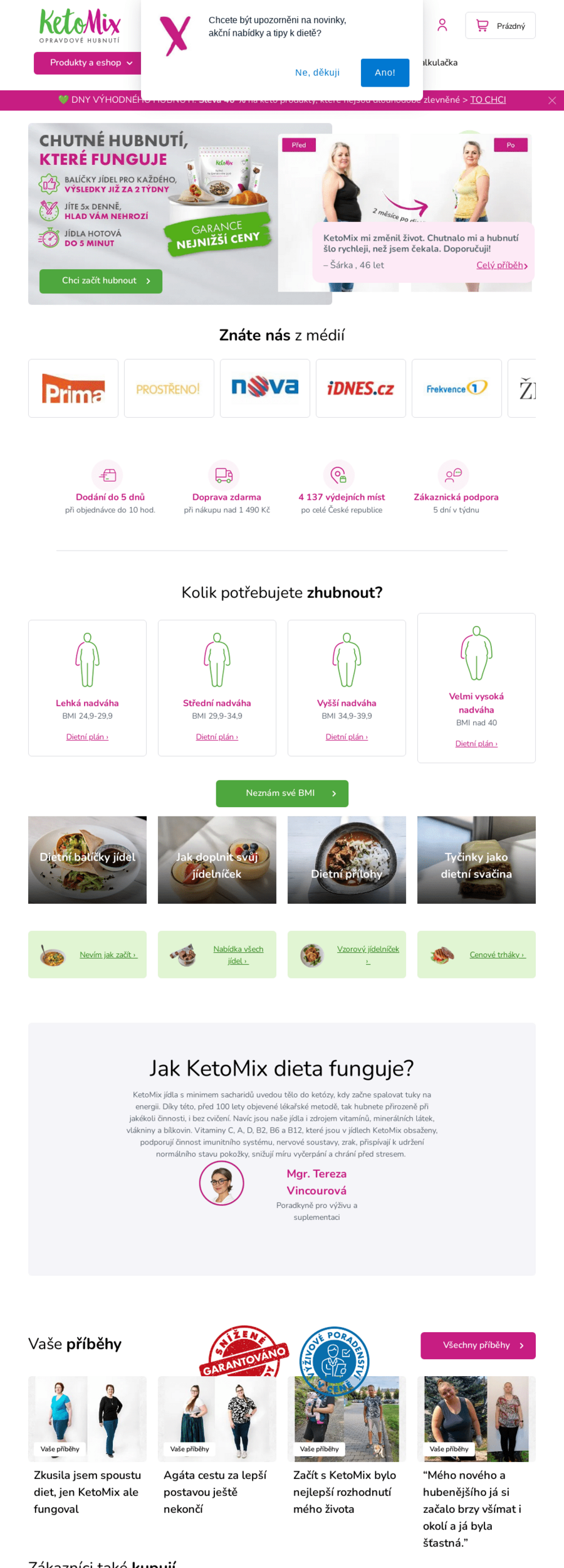 Jedinečný způsob, jak se dostat do skvělé kondice bez hladovění a mnoha hodin strávených cvičením, nabízí dieta KetoMix. Za reálnými výsledky stojí desetitisíce spokojených zákazníků a mnoho výzkumů.