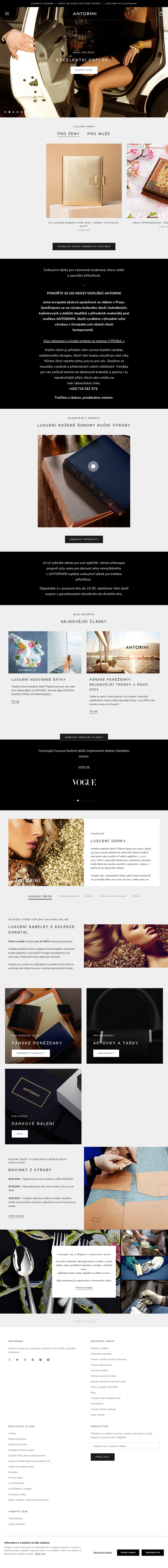 Antorini je značkou koženého zboží a luxusních dárků s důrazem kladeným na vysokou kvalitu. Vyrábí kožené peněženky, kožené tašky, kožené diáře, kožené zápisníky a další kožený sortiment. Každý výrobek je pečlivě navržen Antorini designéry a propracován do nejmenších detailů. Ať už se jedná o kůži, hedvábí, kašmír nebo stříbro, vždy ucítíte, že jde o materiál nejvyšší kvality a je vyroben s mimořádnou pečlivostí.