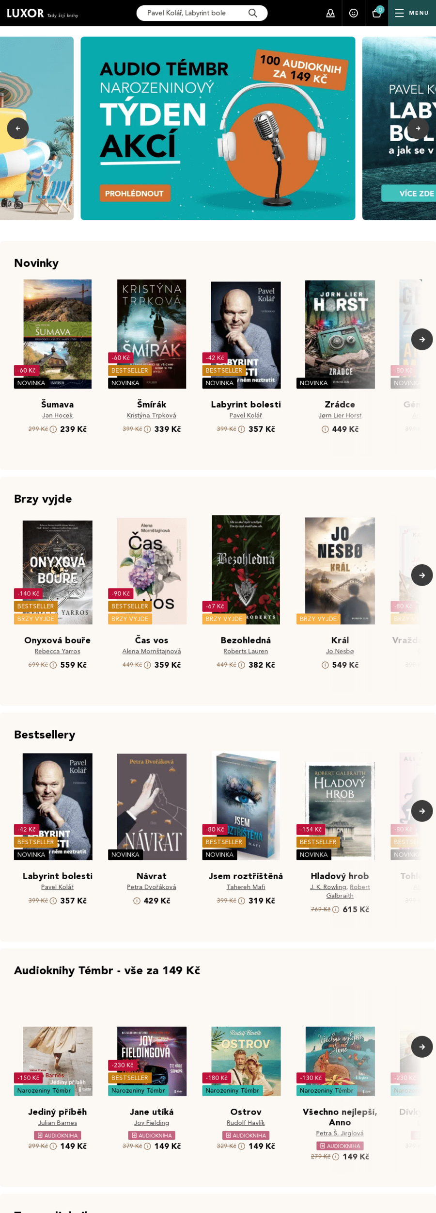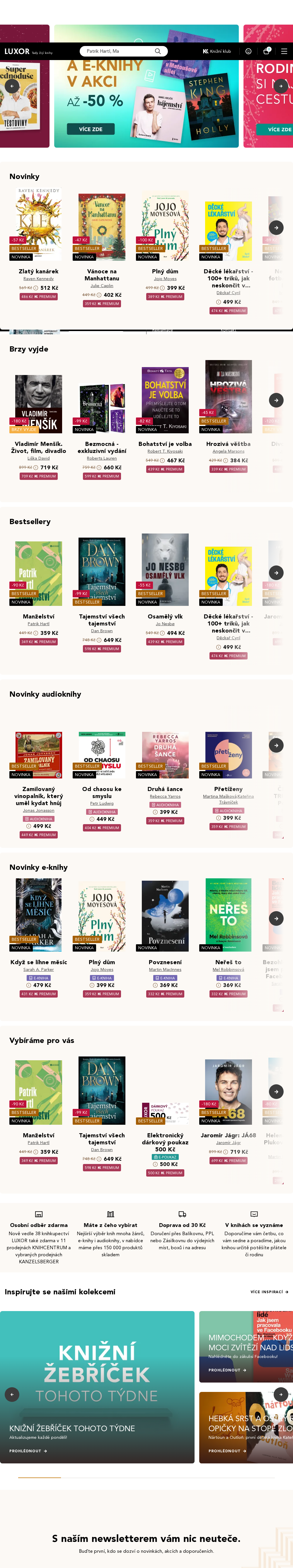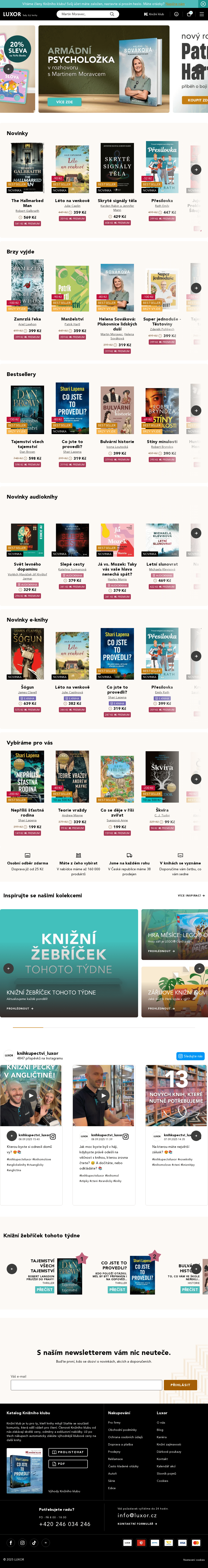 Knihkupectví Luxor je zde pro Vás téměř 20 let a nabízí pohodlný nákup knih online nebo v síti 35 prodejen. V Luxoru najdete největší výběr knih, takže máte jistotu, že vždy dobře vyberete. Najdete zde beletrii, audioknihy, učebnice, odbornou a naučnou literaturu, cizojazyčné knihy, knížky pro děti a mládež i komiksy.