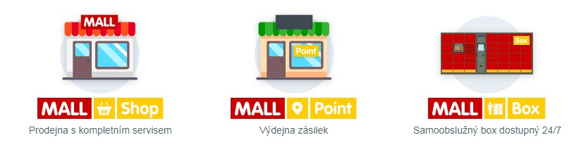 Kamenné prodejny (Mall Shop) lze využívat k vyzvednutí zboží, vrácení zboží i jeho reklamaci. Mall Shopy najdete v téměř každém větším městě v ČR. Po republice v současnosti najdete i několik desítek tzv. Mall Boxů. Boxy nemají omezenou otevírací dobu, takže si své zásilky můžete vyzvednout kdykoliv, třeba po cestě do práce nebo z práce.