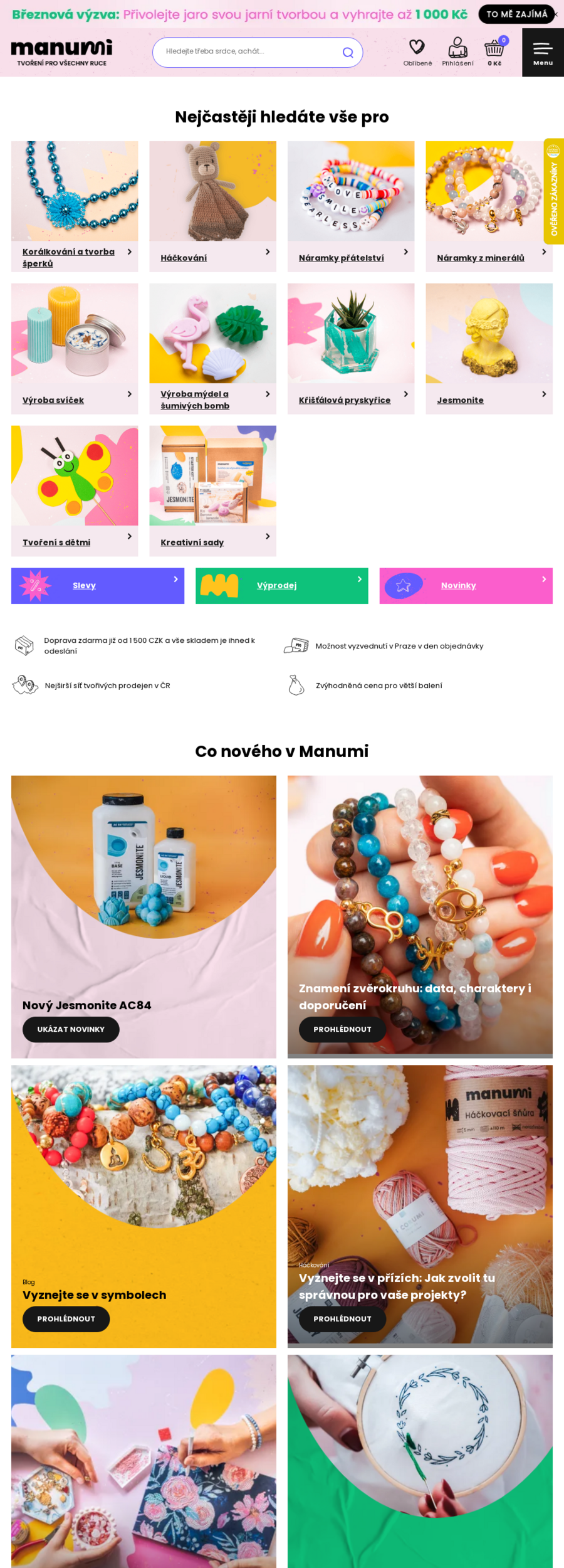Tvoření pro všechny ruce. Korálky a šperky. Minerály a polodrahokamy. Příze a galanterie. Kreativní papírnictví. Barvy a dekorování. Kreativní hmoty a barvy. Pomůcky pro tvoření.