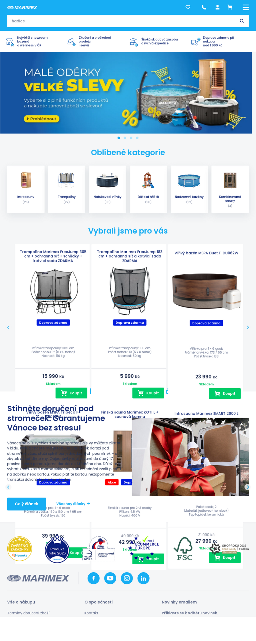 Marimex patří mezi největší dodavatele zboží a služeb v oblasti bazénové a relaxační techniky. Je specializovaným prodejcem již více než 25 let.