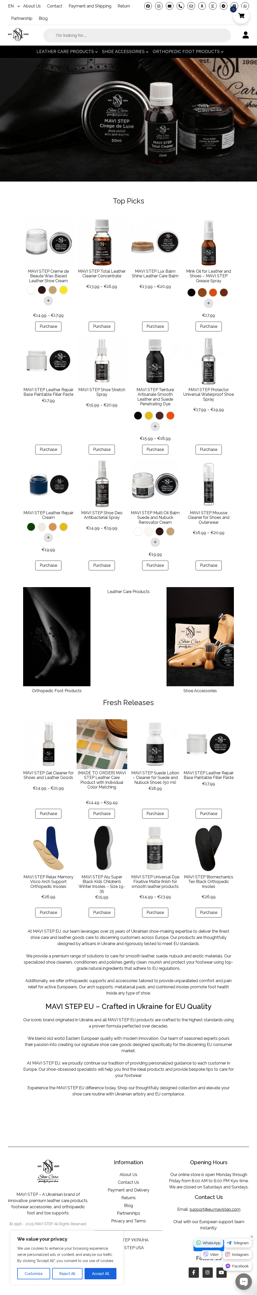 The MAVI STEP EU online store carries a wide range of products to care for leather goods, support foot health, and maintain your shoes.