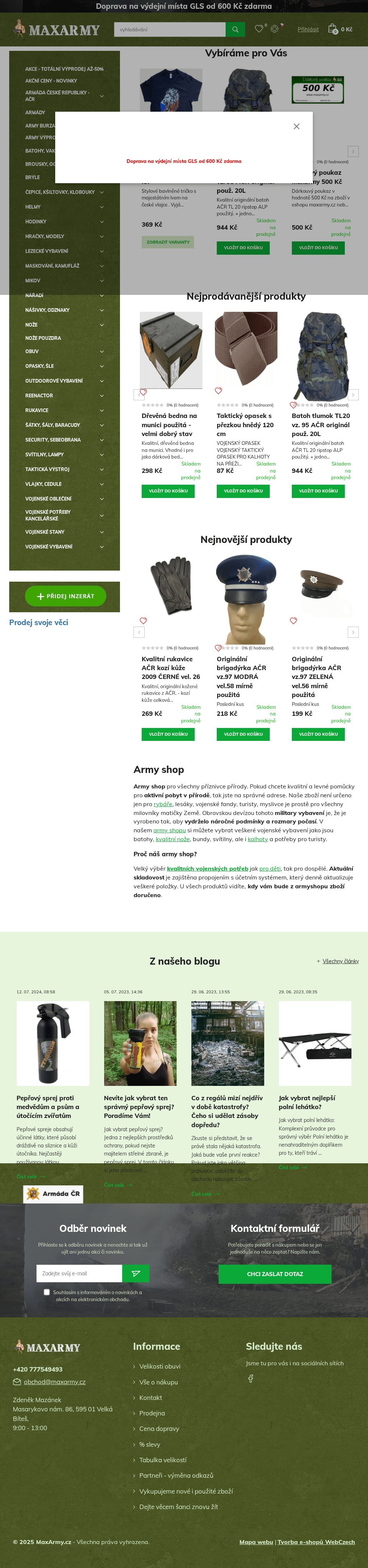 Army shop ve kterém naleznete širokou nabídku vojenských a outdoorových potřeb pro lovce, myslivce, vojáky nebo třeba policisty.