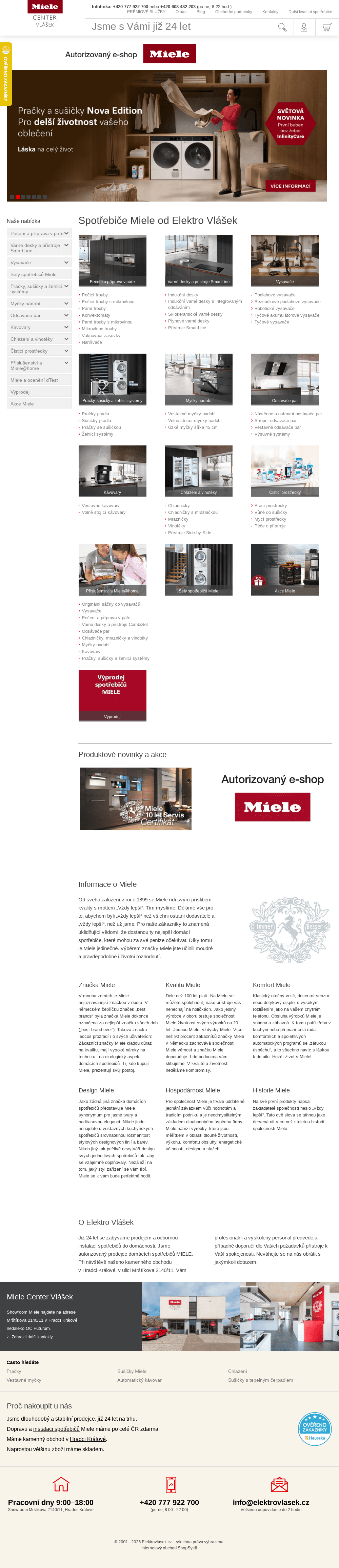 Již 17 let se zabýváme prodejem a odbornou instalací spotřebičů do domácnosti. Jsme autorizovaný prodejce domácích spotřebičů MIELE. Při návštěvě našeho kamenného obchodu v Hradci Králové, v ulici Mrštíkova 2140/11, nebo v Pardubicích, v ulici Pernerova 2802, Vám profesionální a vyškolený personál předvede a případně doporučí dle Vašich požadavků přístroje k Vaší spokojenosti. Neváhejte se na nás obrátit s jakýmkoli dotazem.