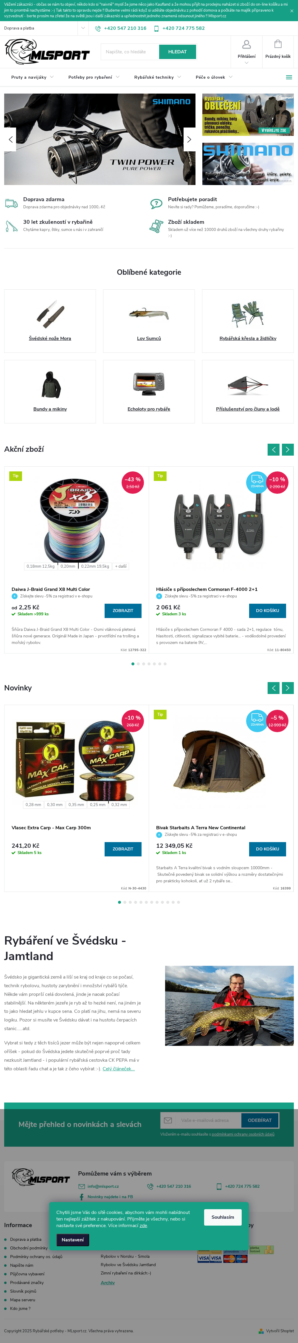 ML Sport.cz je eshop s rybářskými potřebami s dlouhou tradicí v oboru, bohatě zásobenou kamennou prodejnou v Brně a zástupy spokojených zákazníků, kteří se vracejí za kvalitou, odborným servisem a v neposlední řadě i výhodnými cenami. Pro každou rybolovnou techniku dokážeme doporučit optimální vybavení v několika cenových hladinách a přidat osobní zkušenosti s jednotlivými výrobky a značkami. Rybářské potřeby ML Sport.cz jsou synonymem profesionality i osobního přístupu již několik let a pravidelně obnovovaný sortiment láká další a další zákazníky. Přijďte se přesvědčit na www.mlsport.cz a v případě dotazů napište, nebo zavolejte.