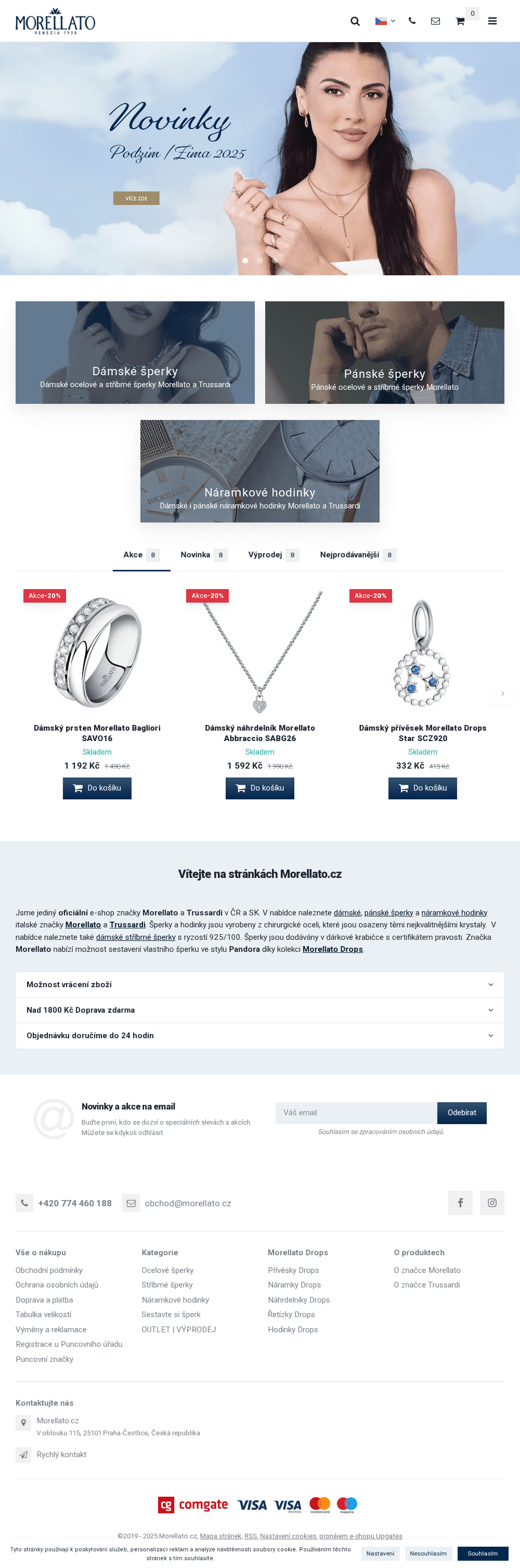 Internetový prodej značkových italských šperků a hodinek značky Morellato a Trussardi. Široký výběr dámských a pánských náramkových hodinek, náramků, prstenů, náušnic a dalších druhů šperků z chirurgické oceli a stříbra s ryzostí 925/1000. Kompletní nabídka oblíbené kolekce Morellato Drops. Doprava nad 1000 Kč ZDARMA.