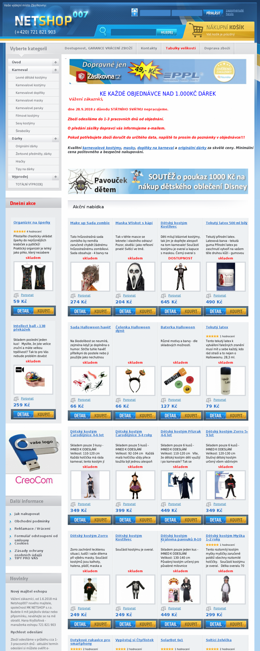 Kvalitní karnevalové kostýmy, masky, doplňky na karneval a originální dárky za skvělé ceny. Minimální cena poštovného a bezpečné nakupování.