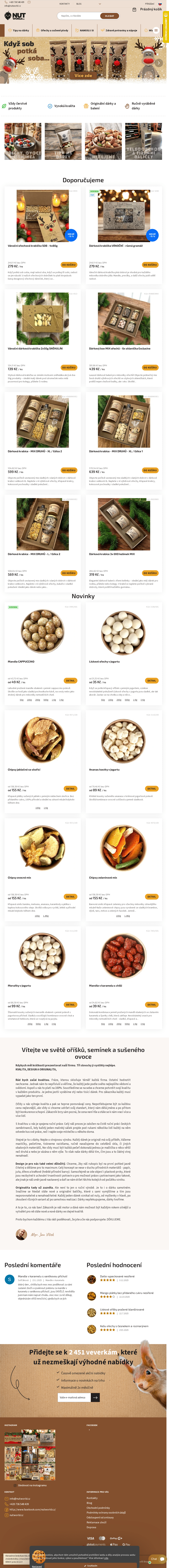 Ořechy, sušené ovoce, semínka a dárky.