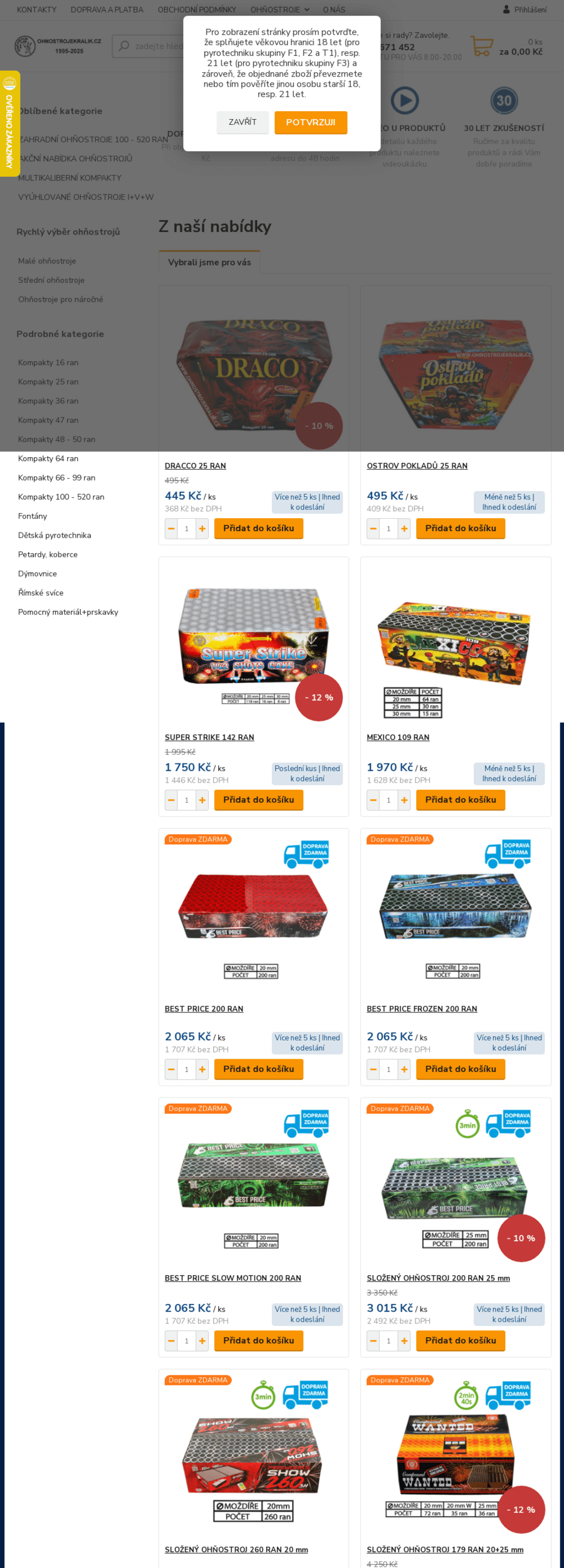 Prodej zábavní pyrotechniky a kompaktních ohňostrojů.