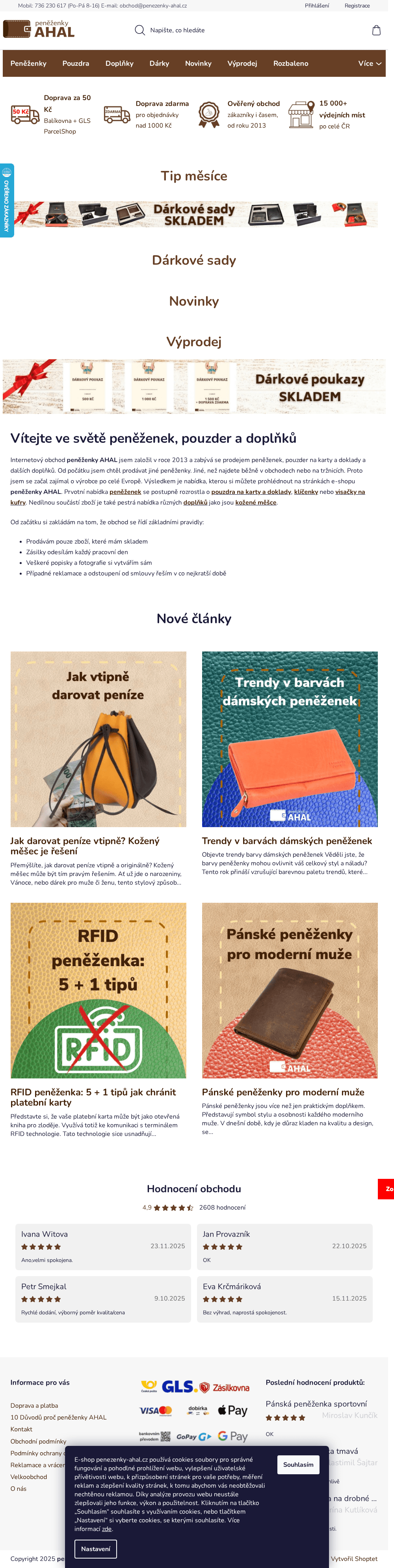 Internetový obchod který prodává pánské a dámské peněženky, převážně kožené. V nabídce je také spousta doplňků - pouzdra na karty, klíčenky, kožené měšce a další.