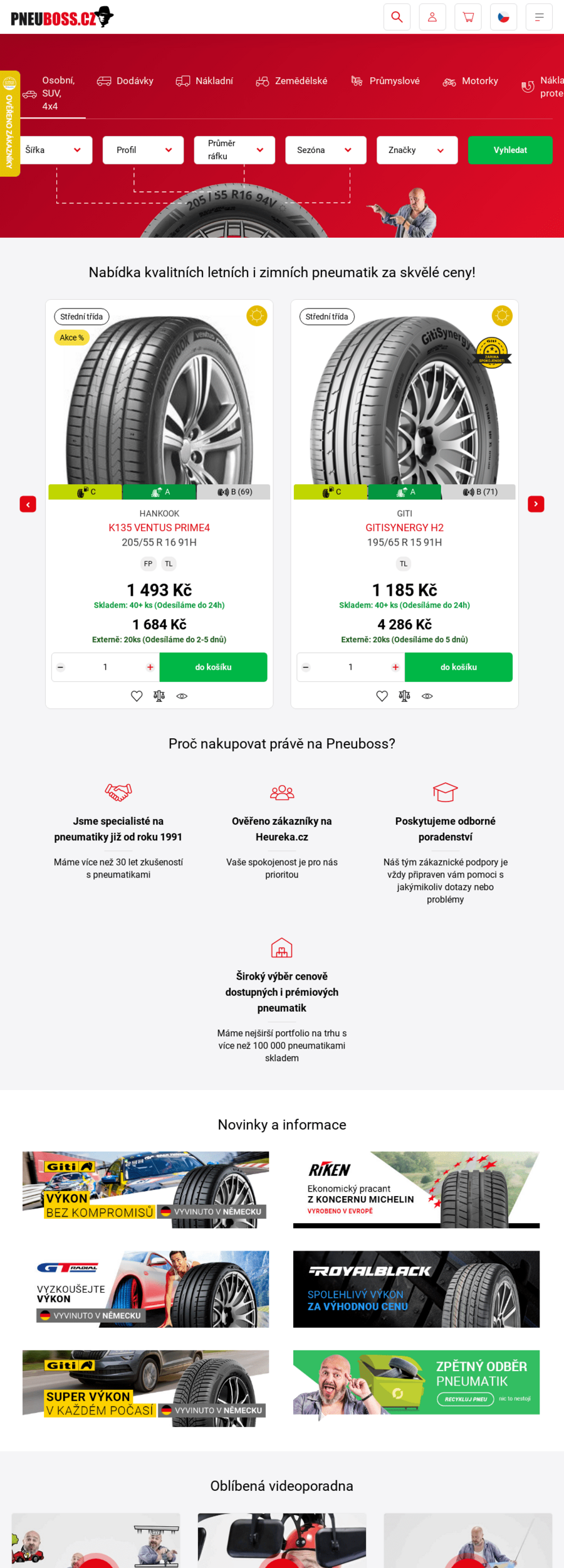 Letní, zimní pneumatiky na osobní vozy, dodávky i nákladní vozy. Alu kola, plechové disky.