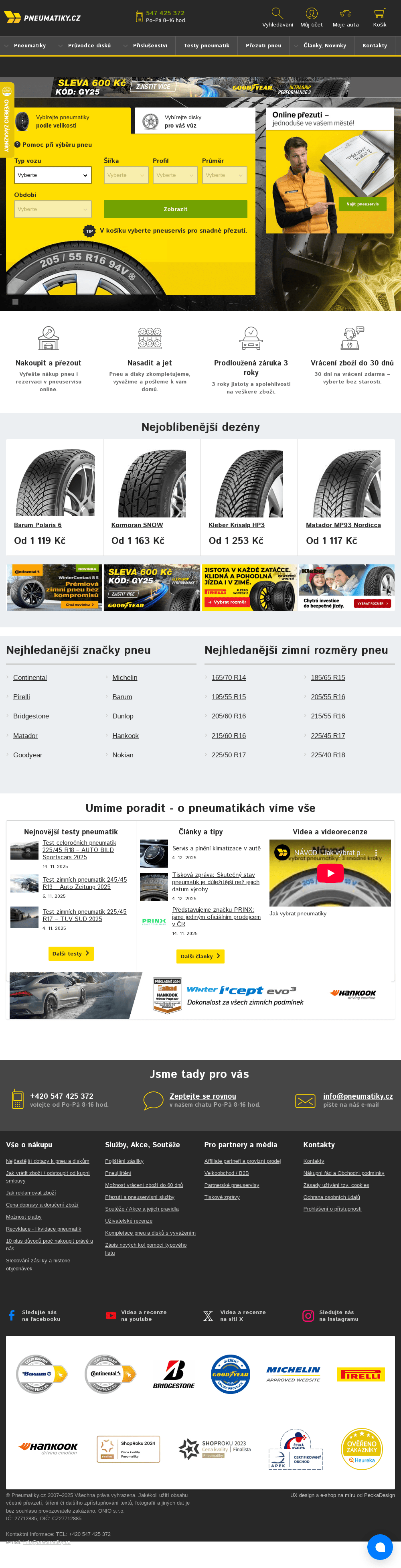 Penumatiky od 550 Kč. Osobní pneumatiky. Dodávkové pneumatiky. Offroad a SUV pneu. Motocyklové pneumatiky. Disky. Příslušenství.