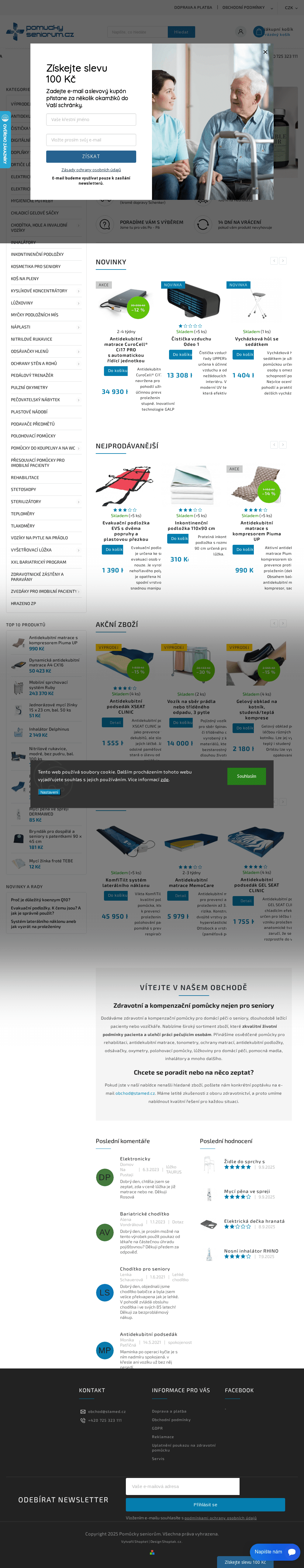 Prodej zdravotnických produktů pro domácí péči o seniory, dlouhodobě ležící pacienty, vozíčkáře či pacienty, kteří nejsou hospitalizováni. Dodáváme profesionální zdravotní a kompenzační pomůcky – lůžkoviny, antidekubitní matrace, oxymetry, laryngoskopy, generátory kyslíku, ochrany matrace, podložky proti proleženinám, tonometry, odsávačky, polohovací pomůcky, zapisovače EKG, lůžkoviny a jiné zdravotnické produkty. Letité zkušenosti v oboru zdravotnictví, možnost osobního odběru.