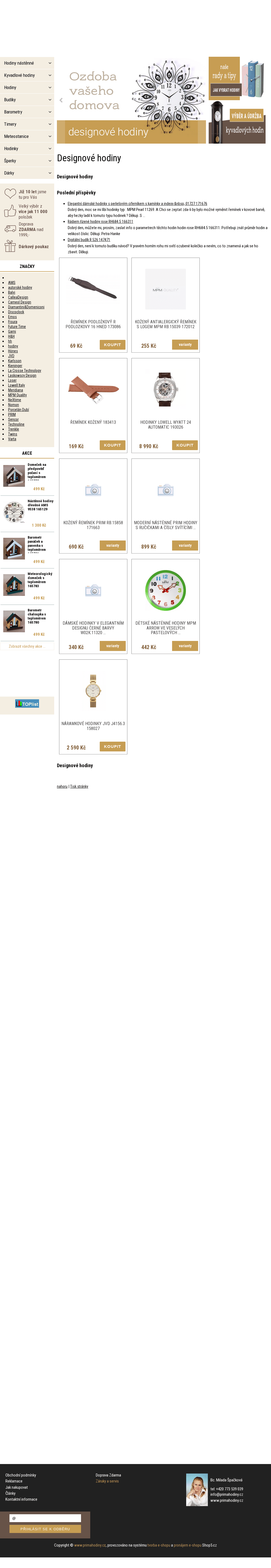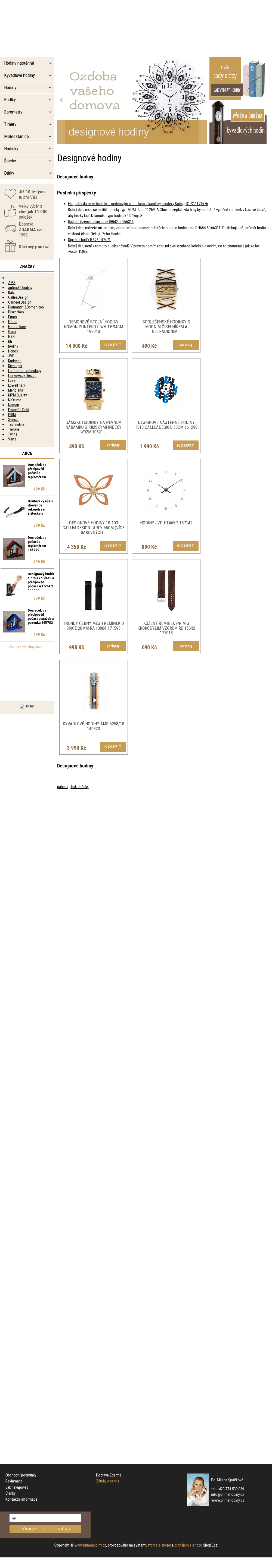 PRIMAhodiny.cz je specializovaný hodinářský eshop s více jak 10.000 položkami. Najdete zde nástěnné, kyvadlové nebo stolní hodiny, budíky, barometry, teploměry, stopky, pánské a dámské hodinky a dárkové předměty.
