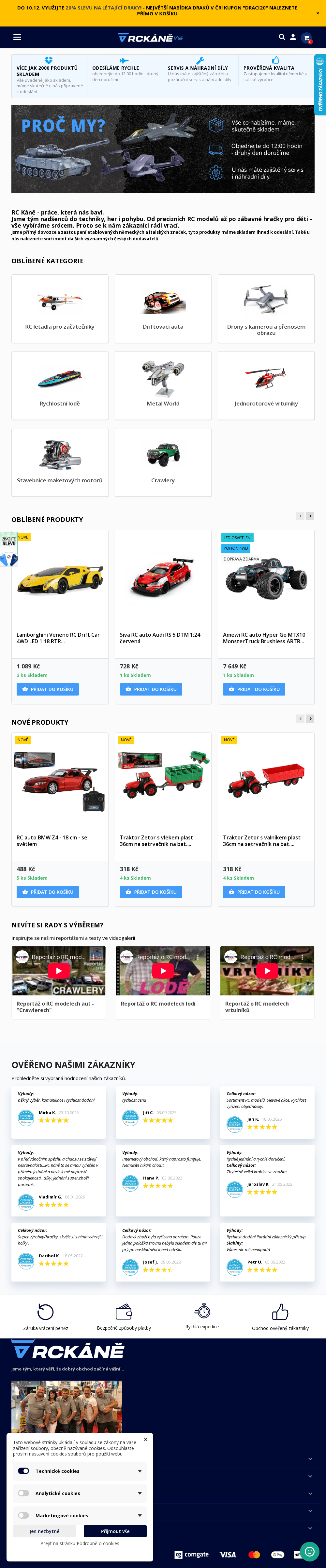 RC modely, RC kvadrokoptéry, RC drony, RC auta, RC letadla a modelářské potřeby.
