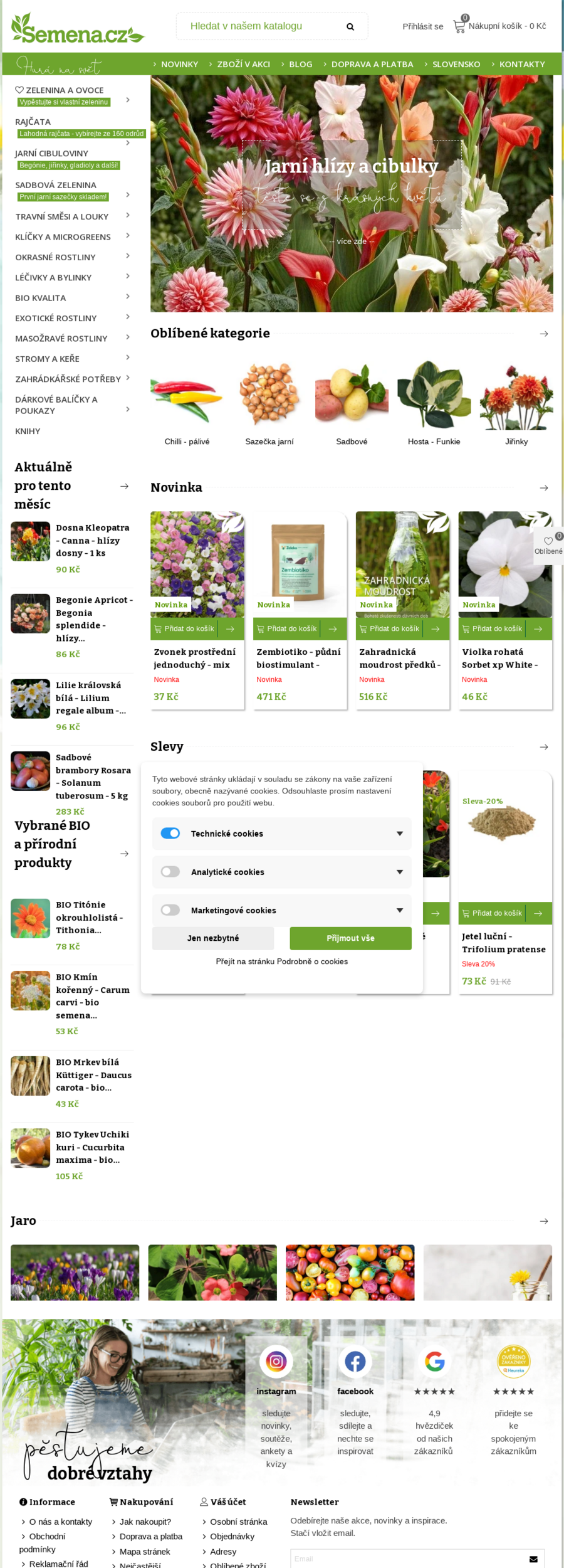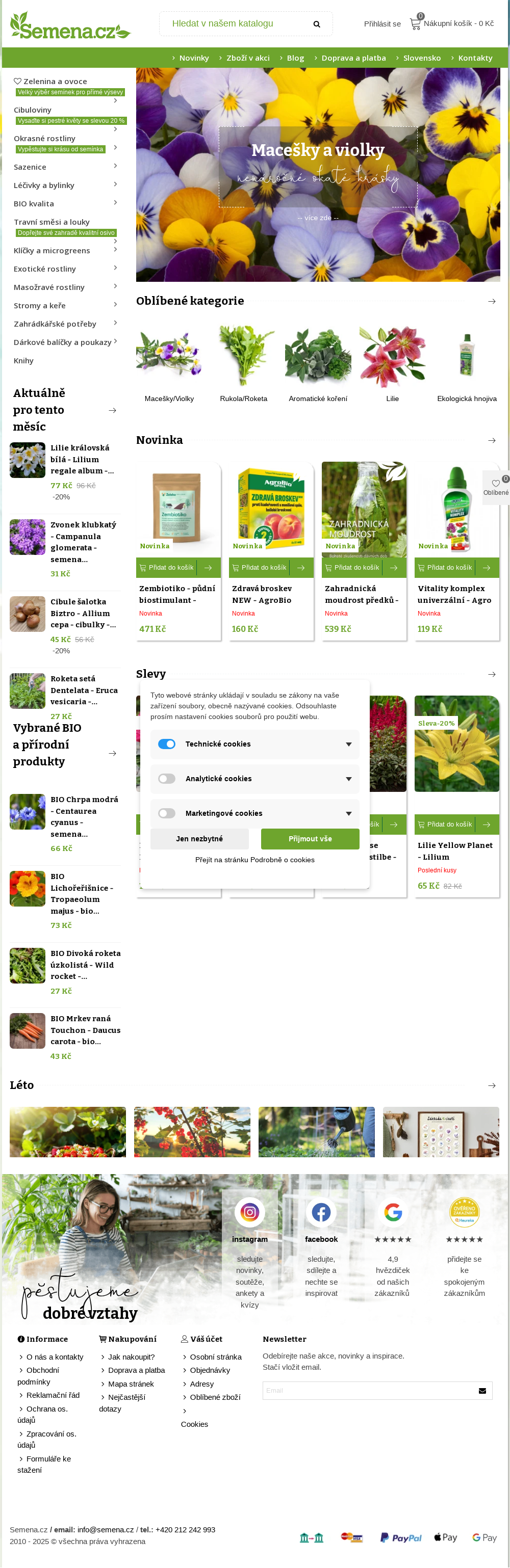 Semena.cz je nabízí širokou nabídku semen zeleniny, včetně bio semen, dále semena exotických rostlin, semena bylinek, semena stromů či palem. Dále nabízíme okrasné cibuloviny, cibule tulipánů