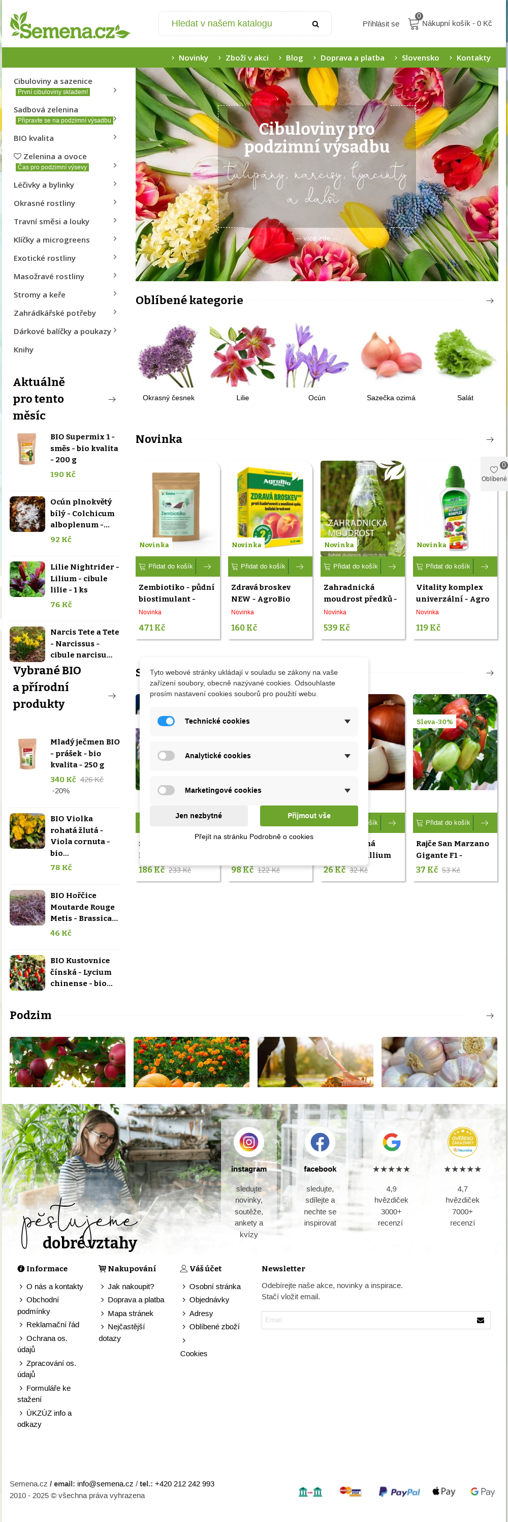 Semena.cz nabízí kvalitní semena rostlin a okrasné cibuloviny. Pestrá nabídka podzimních cibulovin za nízké ceny. Rychlé doručení samozřejmostí. Semena s vysokou klíčivostí. Semena gravioly, semena masožravek, semena cykasů, semena letniček