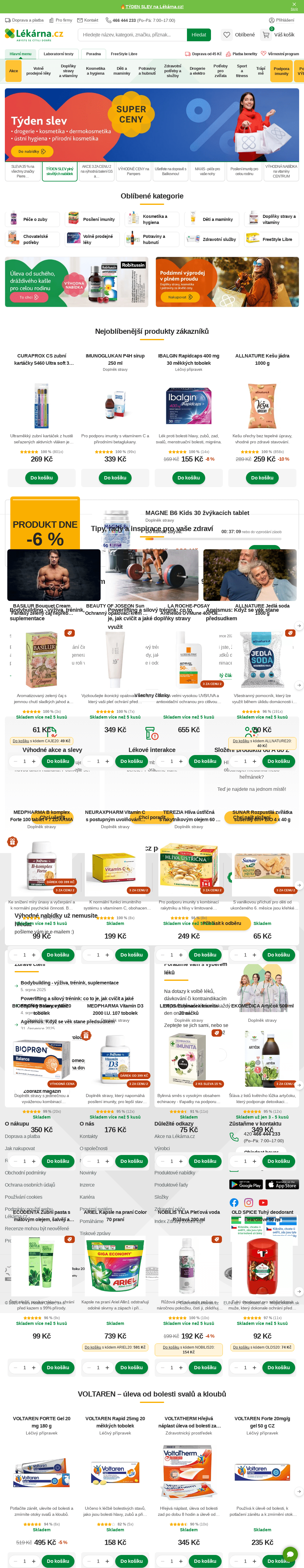 Internetová lékárna pro snadné, rychlé a bezpečné obstarání Vašich léků, potravinových doplňků i kosmetiky. Každý týden můžete využít zajímavé nabídky. Vaše léky doručíme nejpozději do 48 hodin od objednávky nebo si je můžete vyzvednout v síti 300 kamenných poboček našich lékáren.