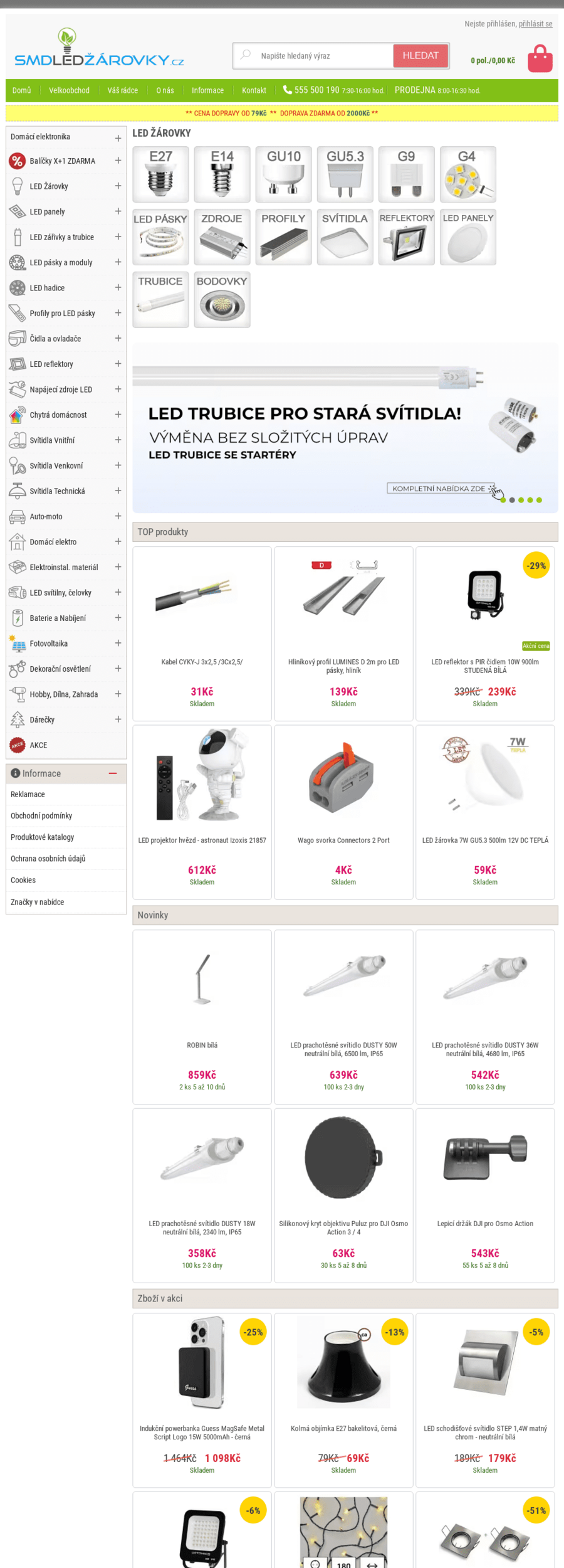 SMDLEDŽárovky.cz - Stovky LED žárovek E27, GU10, E14, G9 LED osvětlení. LED žárovky, LED panely, LED trubice, LED pásky a moduly, profily pro LED pásky a moduly, LED reflektory, napájecí zdroje LED a mnoho dalšího.