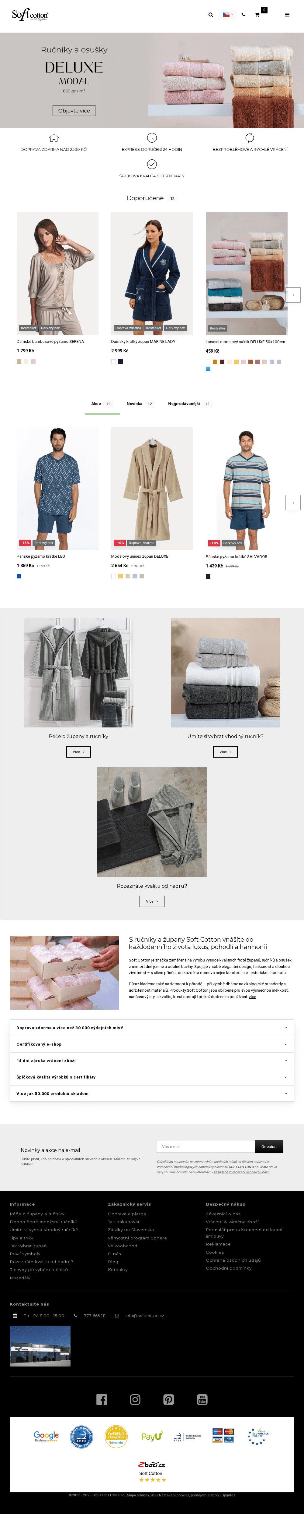 Luxusní dámské a pánské župany, kvalitní ručníky, osušky, koupelnové předložky, dámské pyžama a noční košilky.