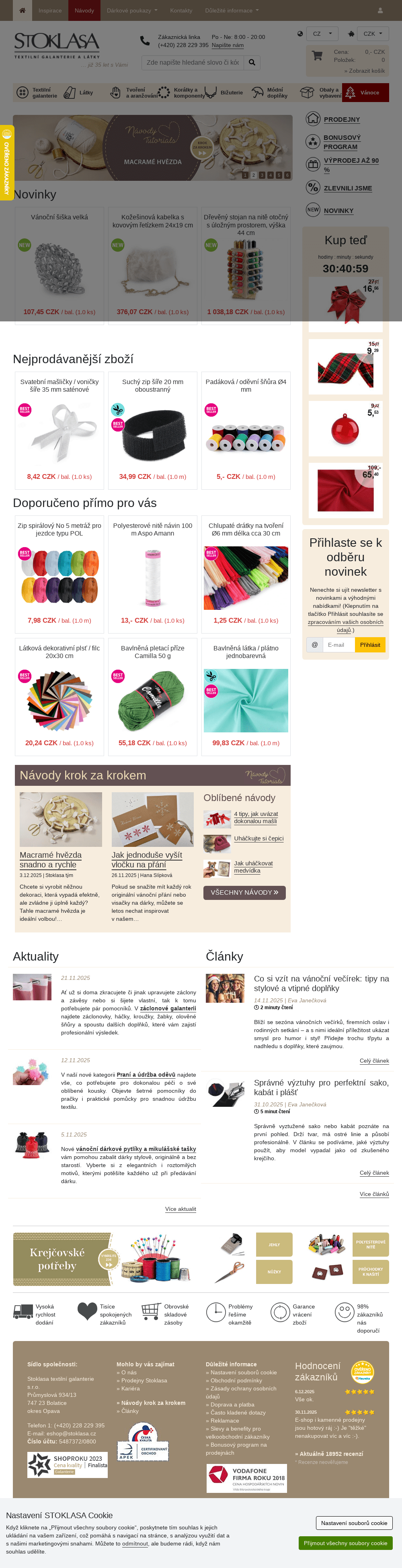 Velkoobchodní prodejce textilní galanterie. Internetový obchod s širokým sortimentem galanterního zboží.