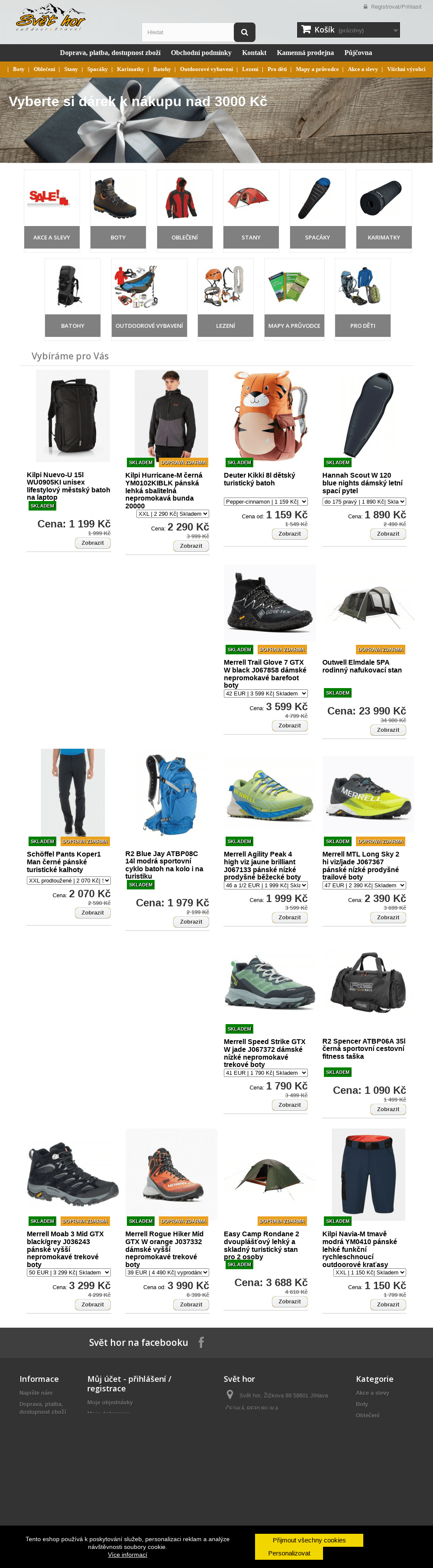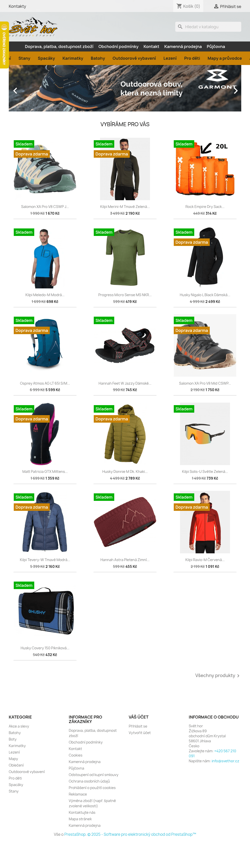 U nás najdete veškeré turistické, outdoorové a horolezecké vybavení - levné ceny, kvalitní značky. Převážná většina zboží skladem, ihned k odeslání. Rychlá komunikace. Levná doprava. Doprava zdarma již od 50 eur. Obchod prověřený zákazníky. Možnost vrácení nepoužitého zboží.