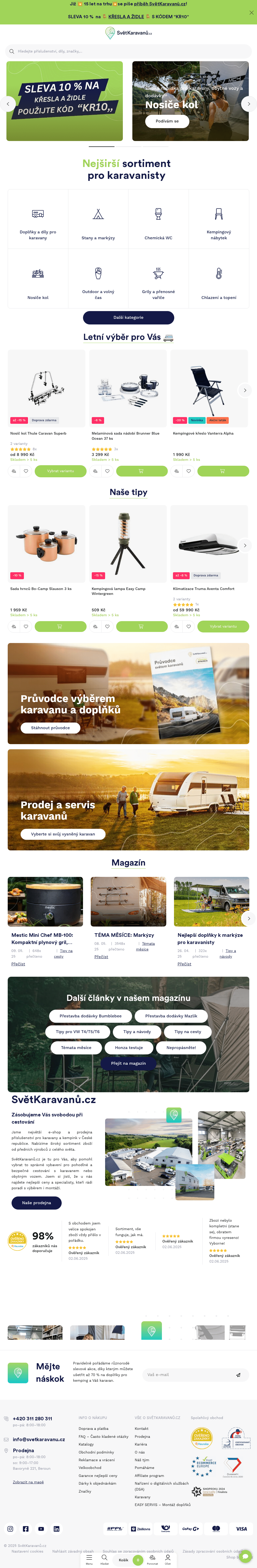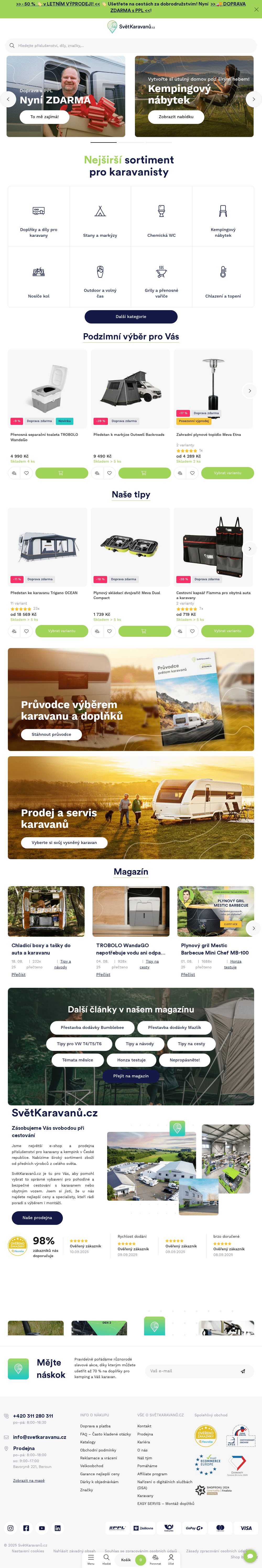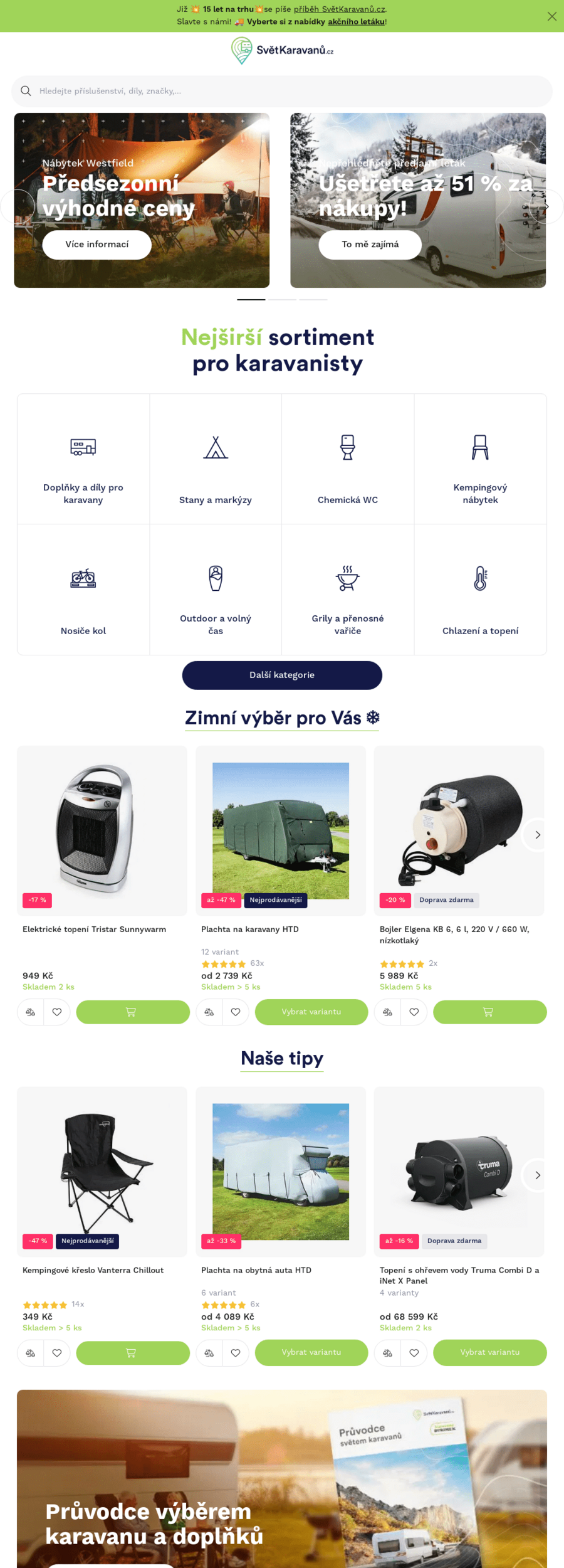 Hledat můžete prostřednictvím známých značek kempingového vybavení i podle parametrů v příslušných kategoriích. A těšit se můžete i na rychlou expedici (položky skladem jsou odesílány nejpozději následující pracovní den), přívětivé ceny a dárek zdarma ke každé objednávce. Vyberte si vše, co potřebujete v největším e-shopu a kamenné prodejně s karavanovými doplňky Svetkaravanu.cz.
