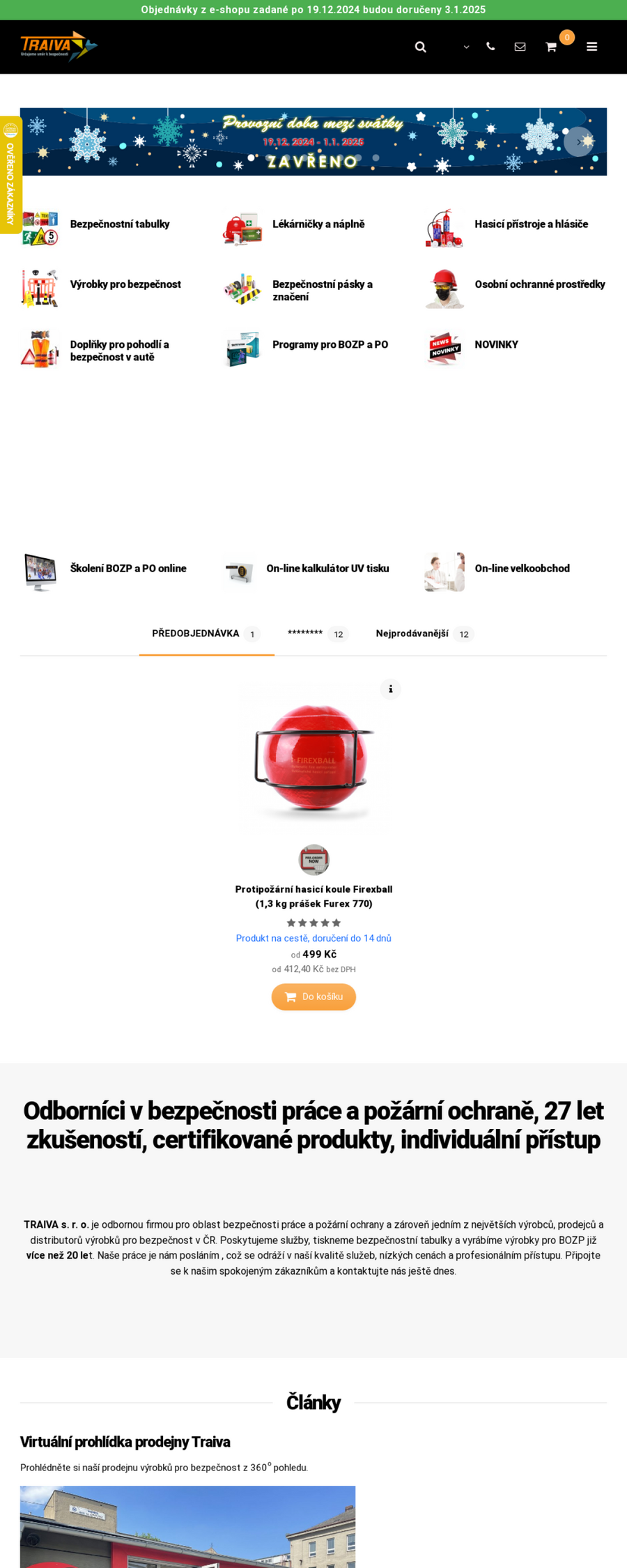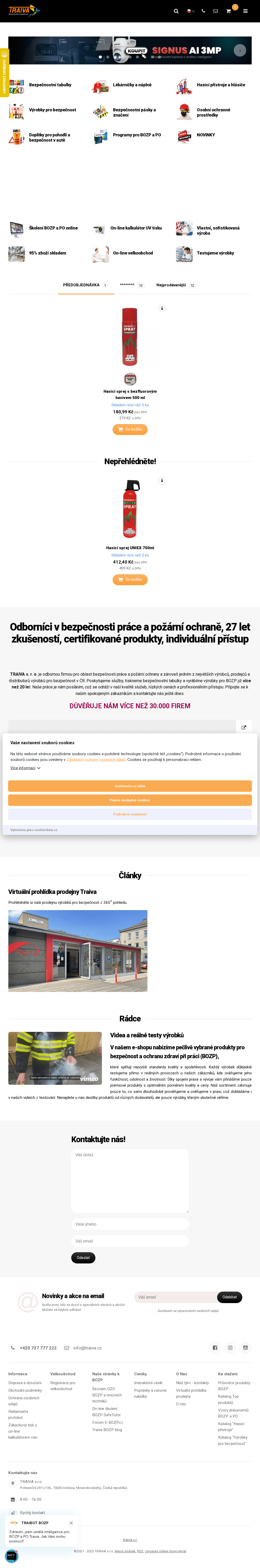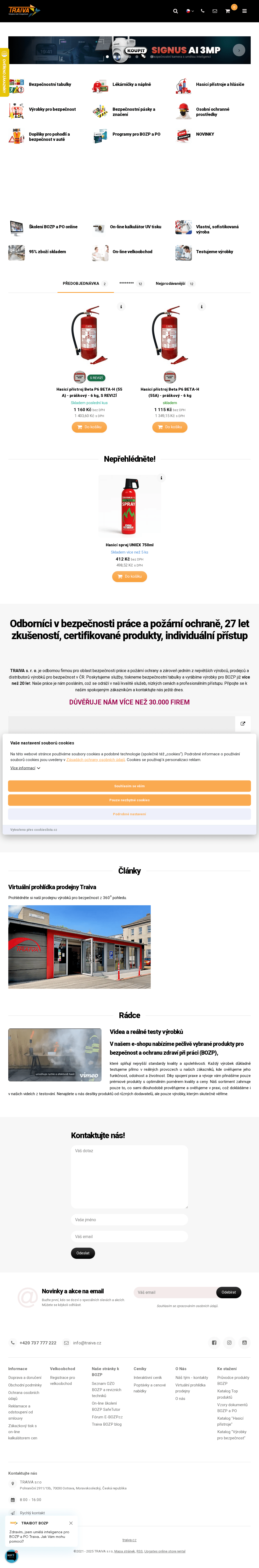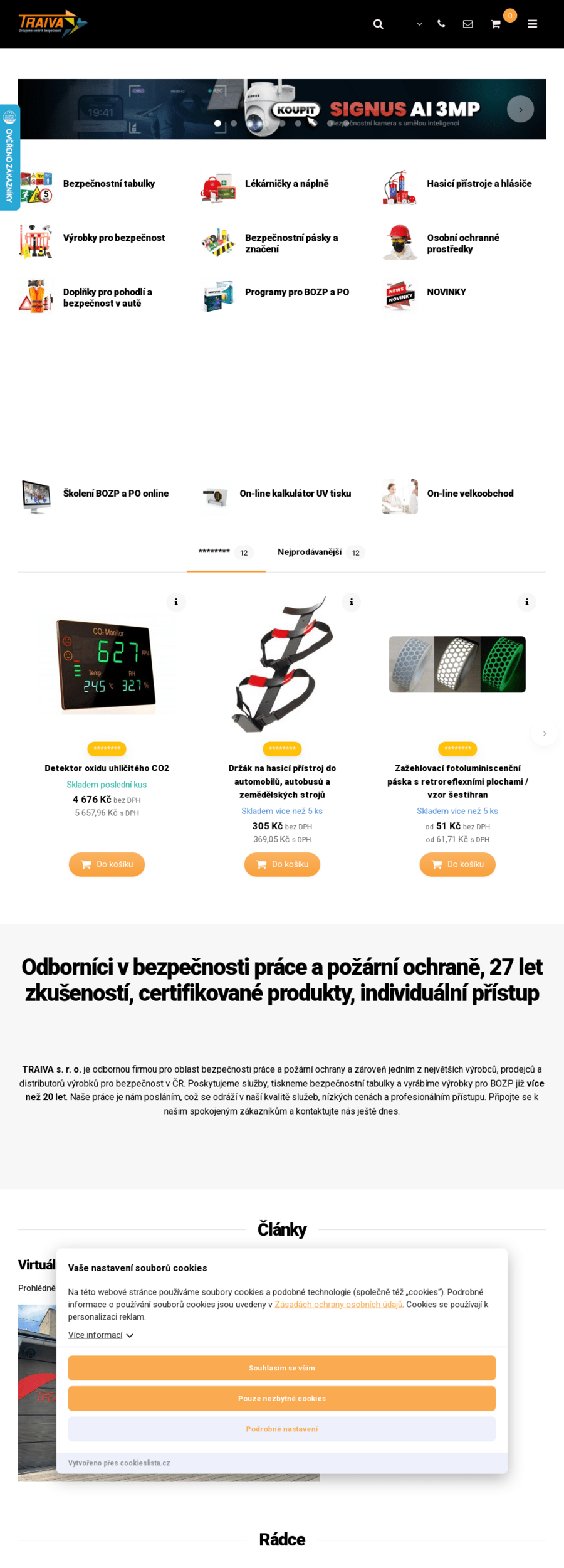 Bezpečnostní tabulky. Lékárničky a náplně. Hasicí přístroje a hlásiče. Pásky a značení. Požární ochrana. Osobní ochranné pomůcky. Software BOZP a PO.