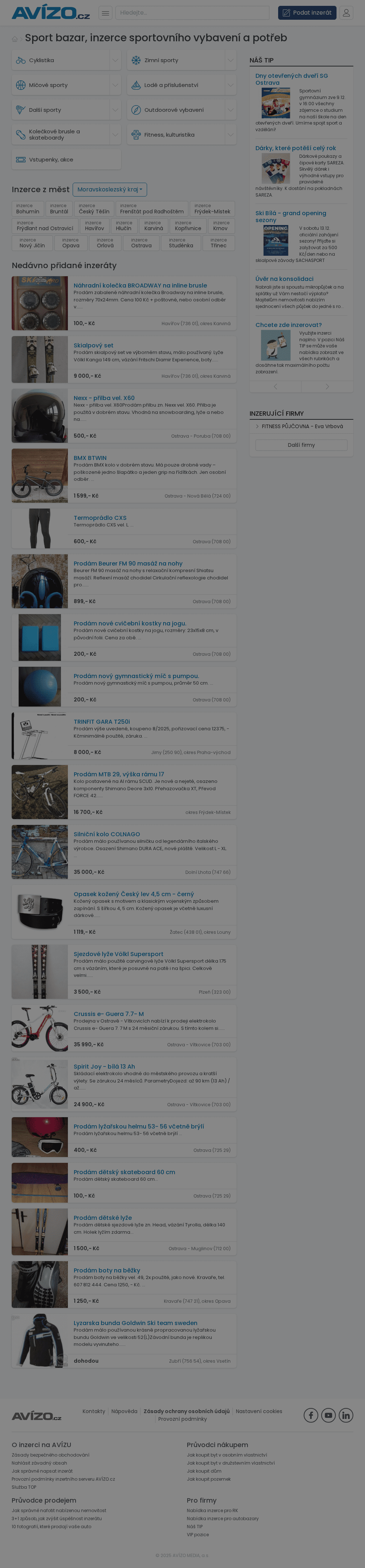 Nabízíme veškerý sortiment sportovního zboží pro všechny roční období. Např.: lyžování, skateboarding, hokey, fotbal, tenis, běh, plavání atd..