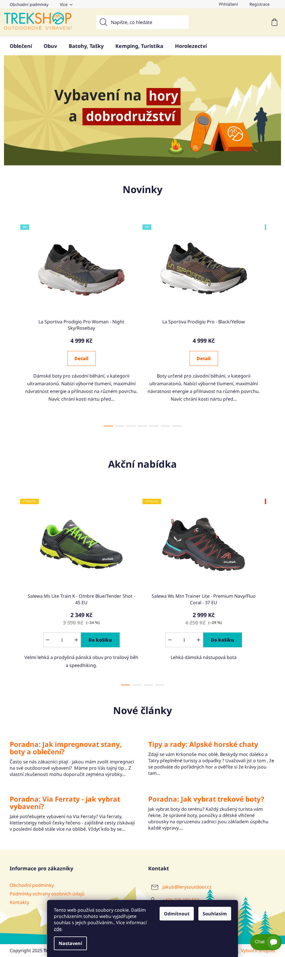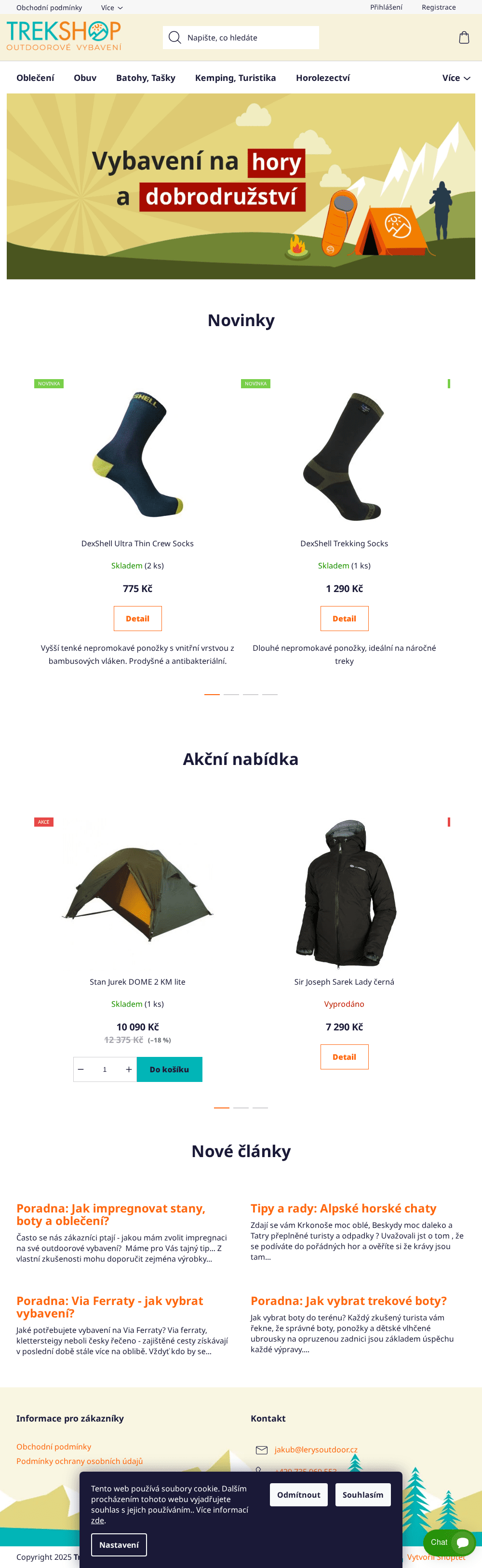 stany, batohy, spací pytle, karimatky, oblečení a další vybavení.