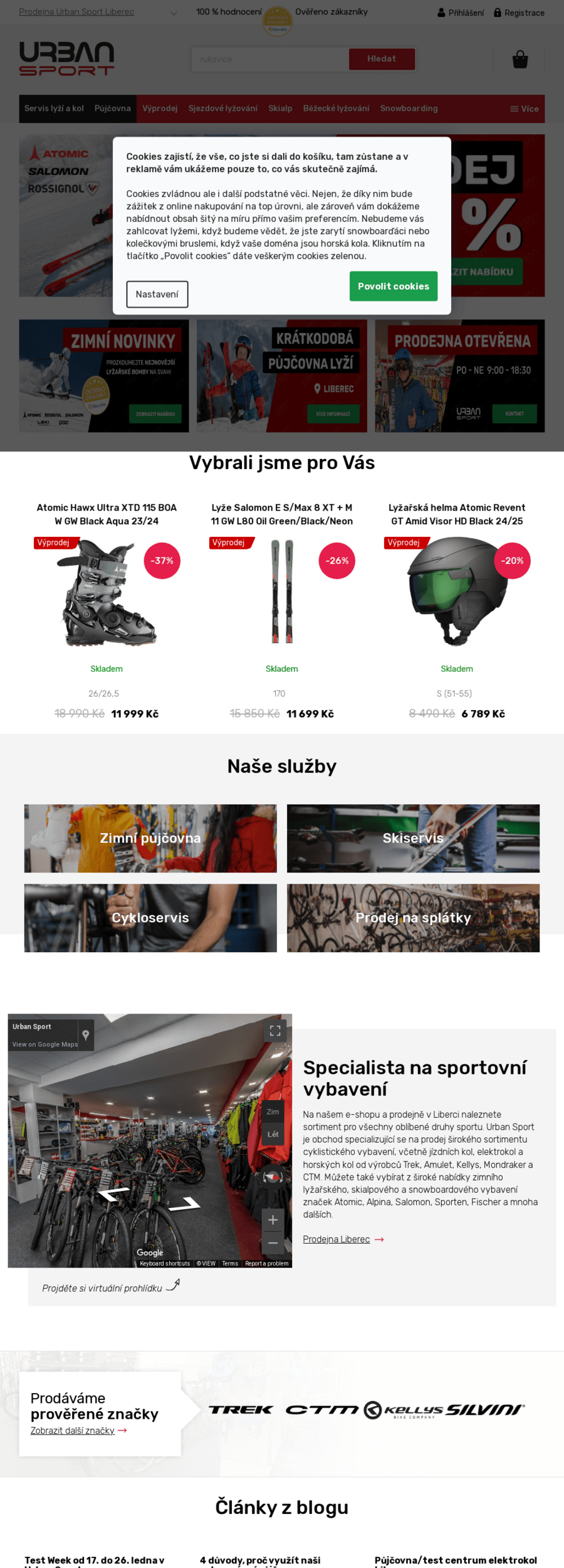 Obchod se specializuje na sezónní prodej sportovních potřeb známých světových ale i českých značek.