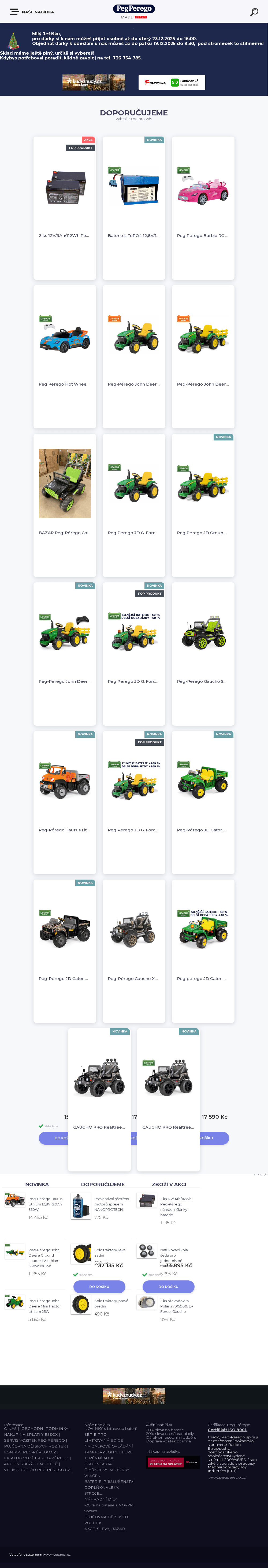 Nabízíme dětská elektrická vozítka Peg-Pérego od r. 1999. Prodáváme autíčka, tříkolky, čtyřkolky, traktory i motorky pro děti. Poskytujeme záruční i pozáruční servis včetně náhradních dílů. V našem sortimentu naleznete i baterie do dětských autíček, přilby a vleky či bazarová vozítka.