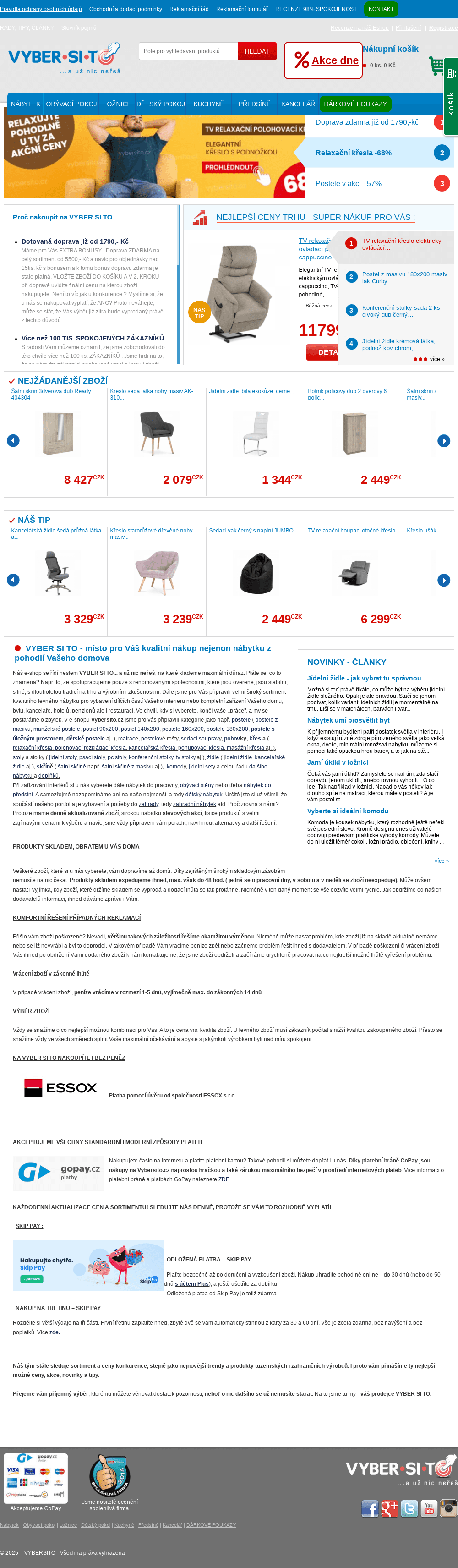 Vybersito.cz je specialista na nábytek. Dostanete zde vše pro dobré, kvalitní a zdravé spaní, to znamená pohodlné postele, různé typy matrací, roštů. Vybavit si můžete i obývací pokoj díky široké nabídce obývacích stěn, sedacích souprav, křesel, konferenčních stolků a dalších bytových doplňků. Vybersito.cz vám pomůže zařídit i krásný dětský nebo studentský pokoj a nesmíme zapomenout ani na předsíně a pracovny. Všechny produkty jsou v širokém cenovém rozpětí a zohledňují veškeré možnosti zákazníka.