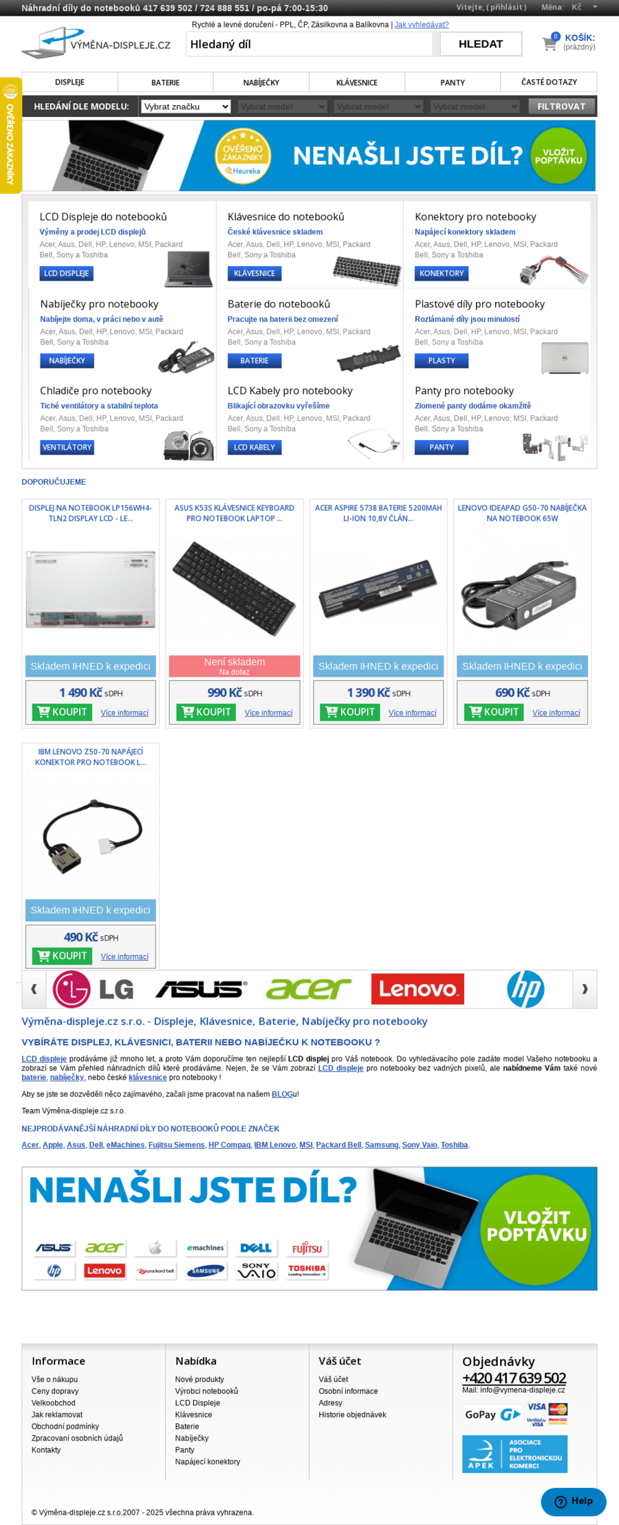 Výměna LCD displeje notebooků, klávesnice, panty, baterie, nabíječky a další.
