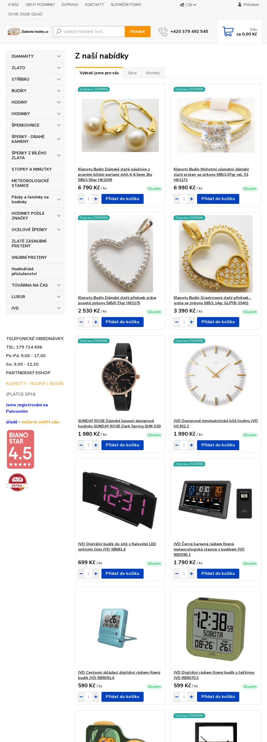 Prodej zlatnického, diamantového a hodinářského zboží, hodiny, hodinky, zlaté šperky, diamantové prsteny, zásnubní prsteny, budíky, meteostanice, šperky s drahými kameny
